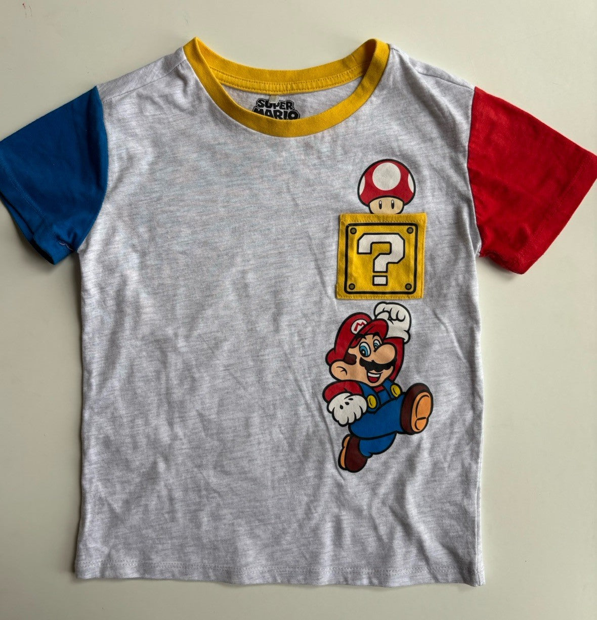 Super Mario kids boys size 9 grey short sleeve t-shirt Mario mushroom,