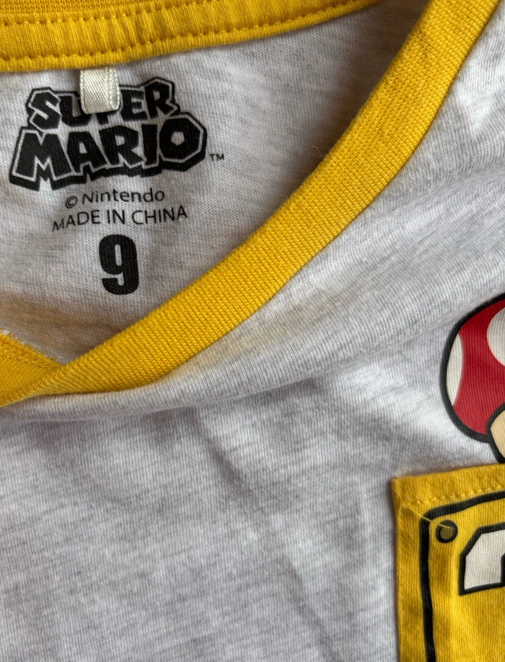 Super Mario kids boys size 9 grey short sleeve t-shirt Mario mushroom, VGUC