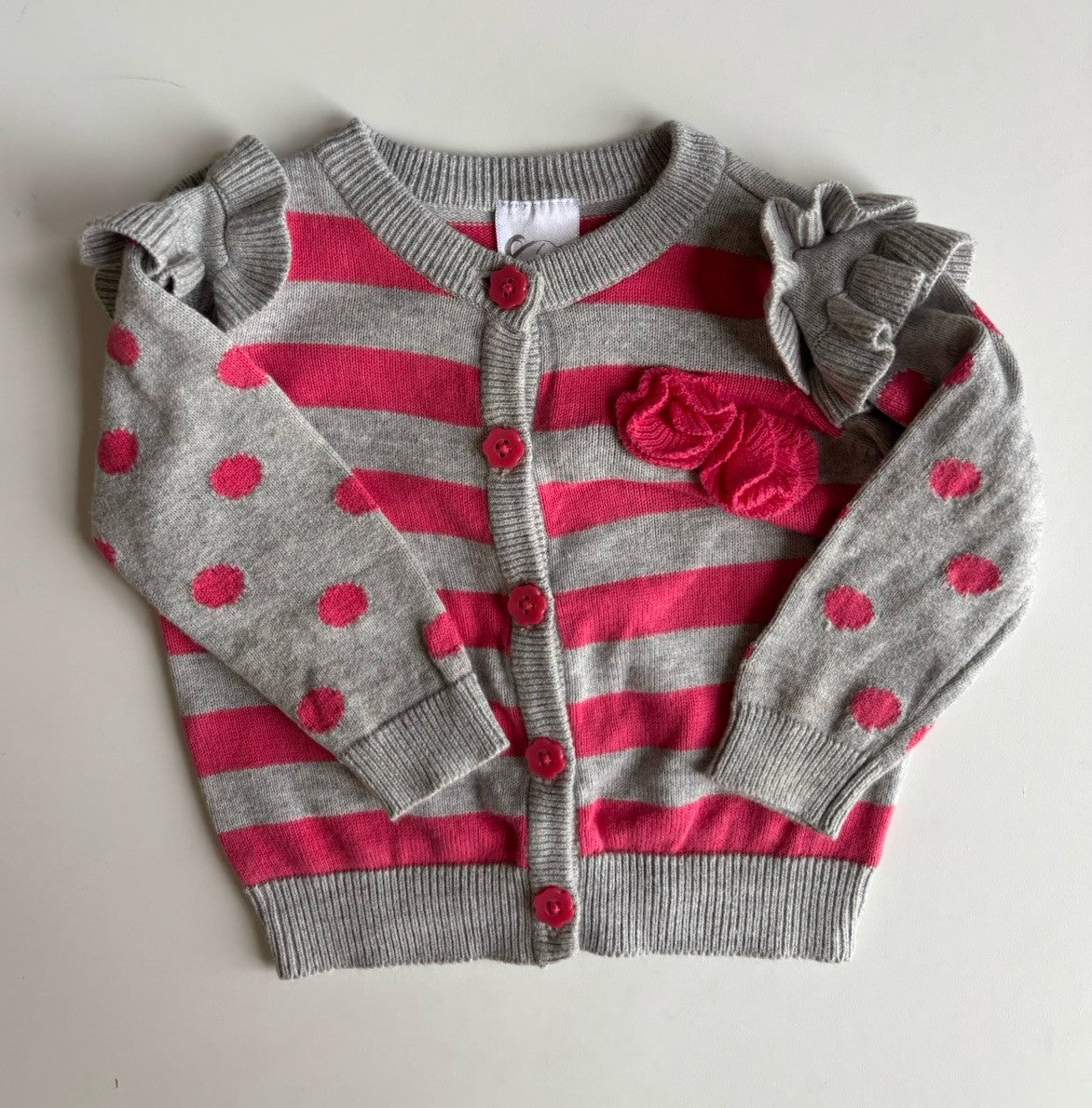 Target baby girl size 0-3 months pink grey knitted stripe cardigan, VG