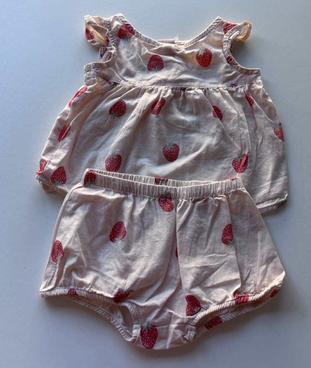 Target baby girl size 0-3 months pink strawberry top shorts set, VGUC