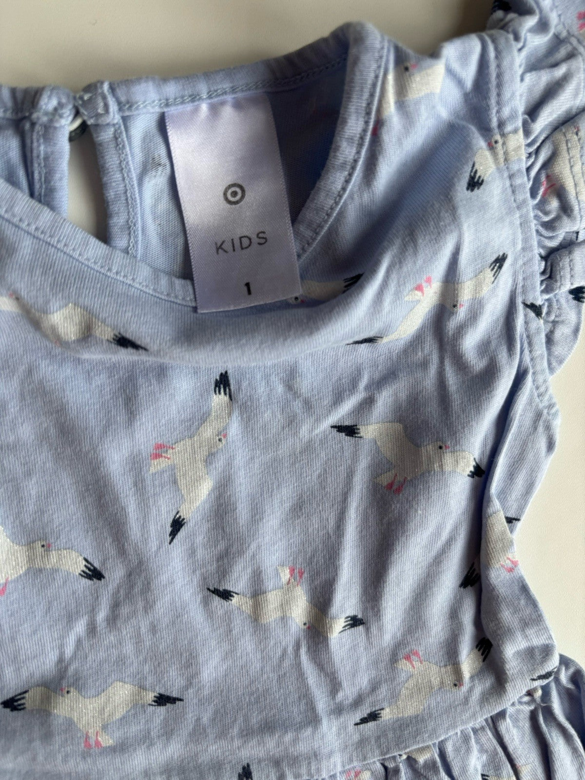 Target baby girl size 12-18 months blue seagulls short sleeve dress, V