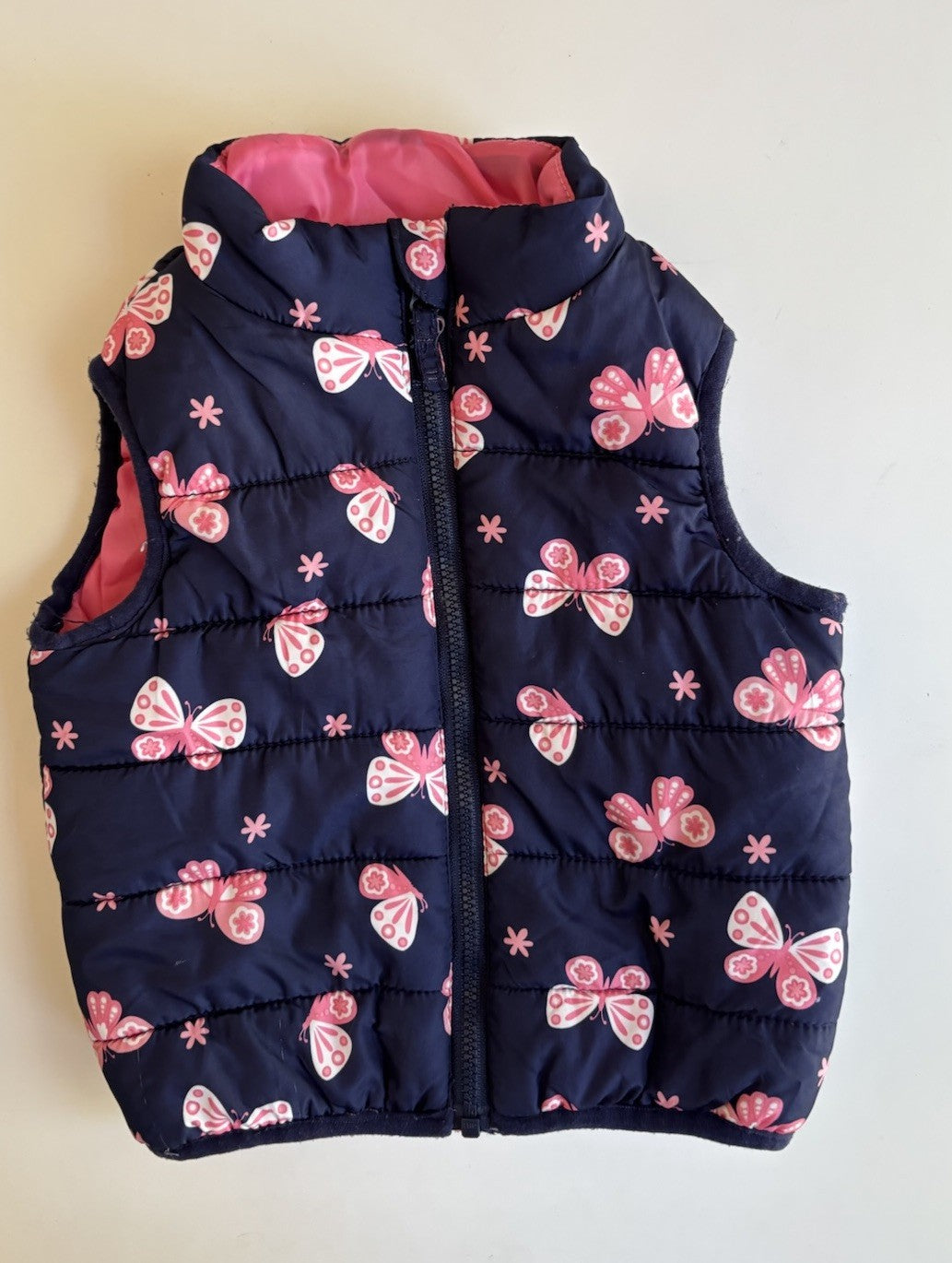 Target baby girl size 12-18 months navy blue pink butterfly puffer vest, VGUC
