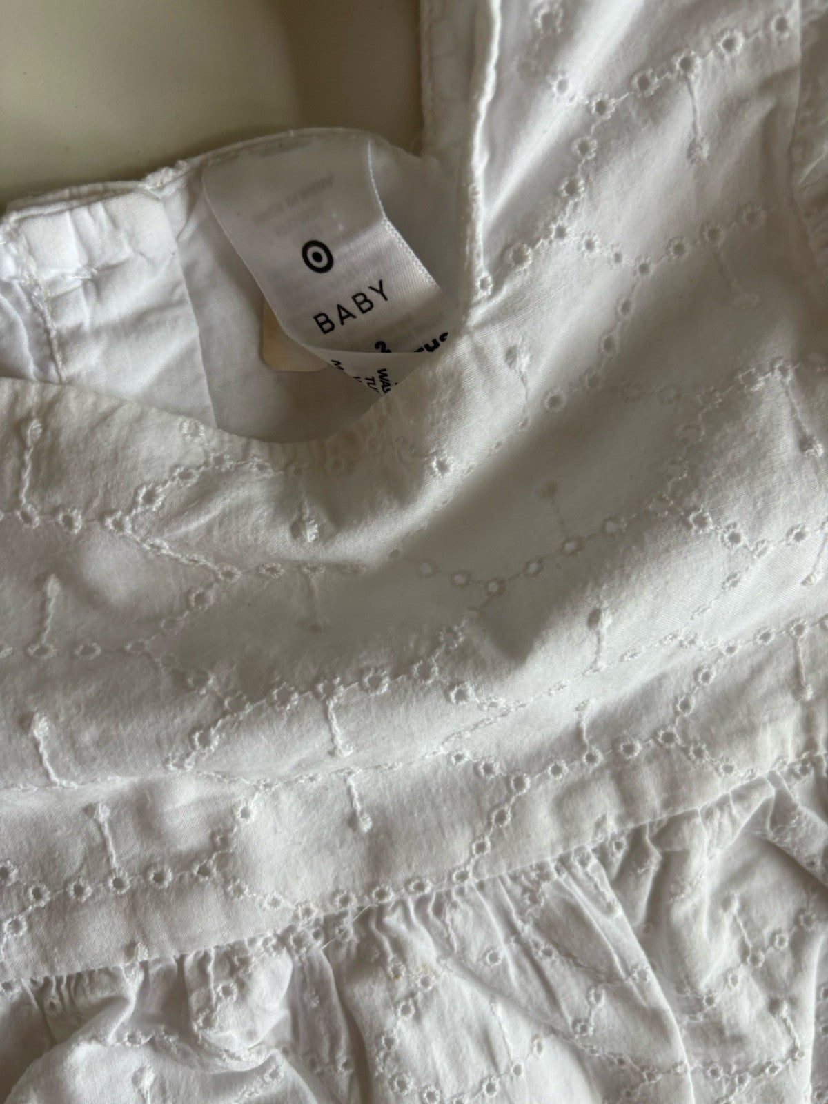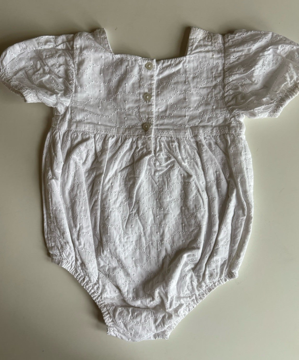 Target baby girl size 18-24 months white lace romper one-piece, VGUC