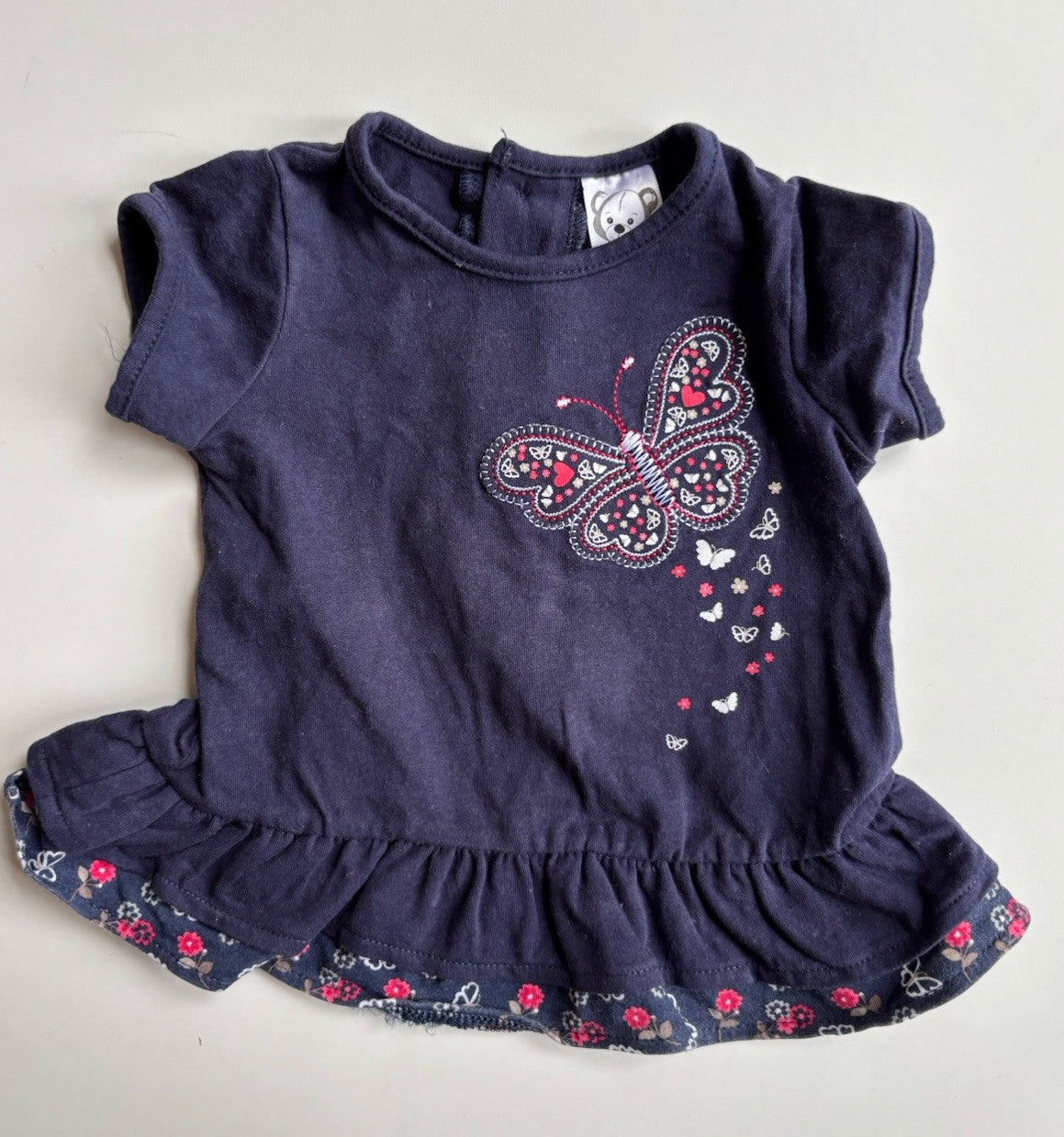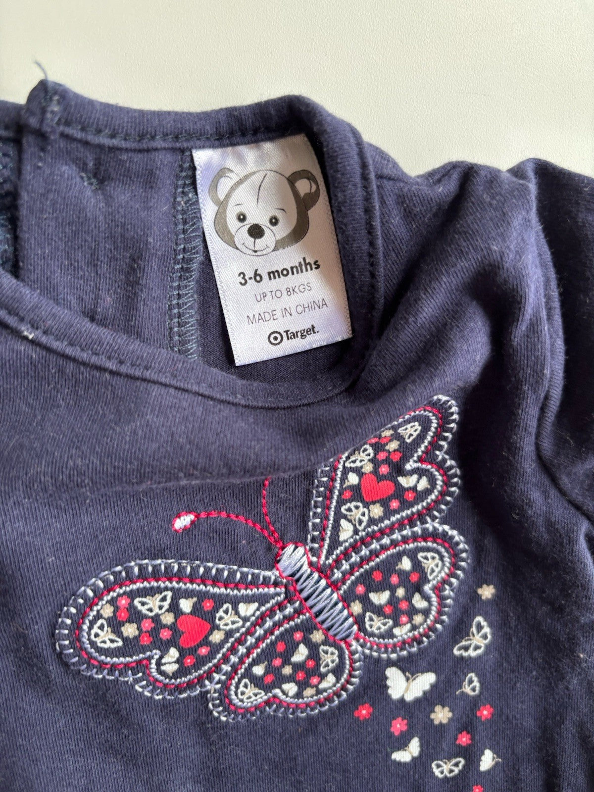 Target baby girl size 3-6 months navy blue butterfly short sleeve top,