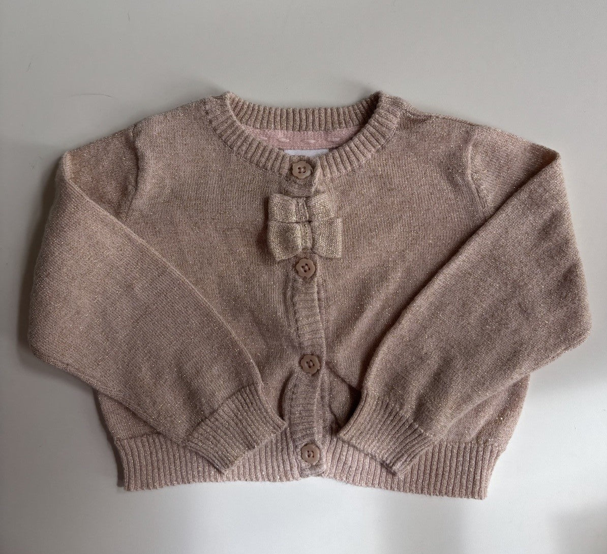 Target baby girl size 6-12 months gold sparkle knitted cardigan, VGUC