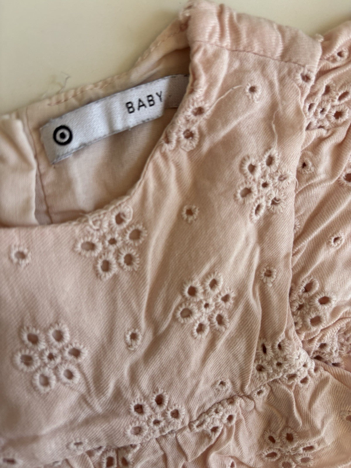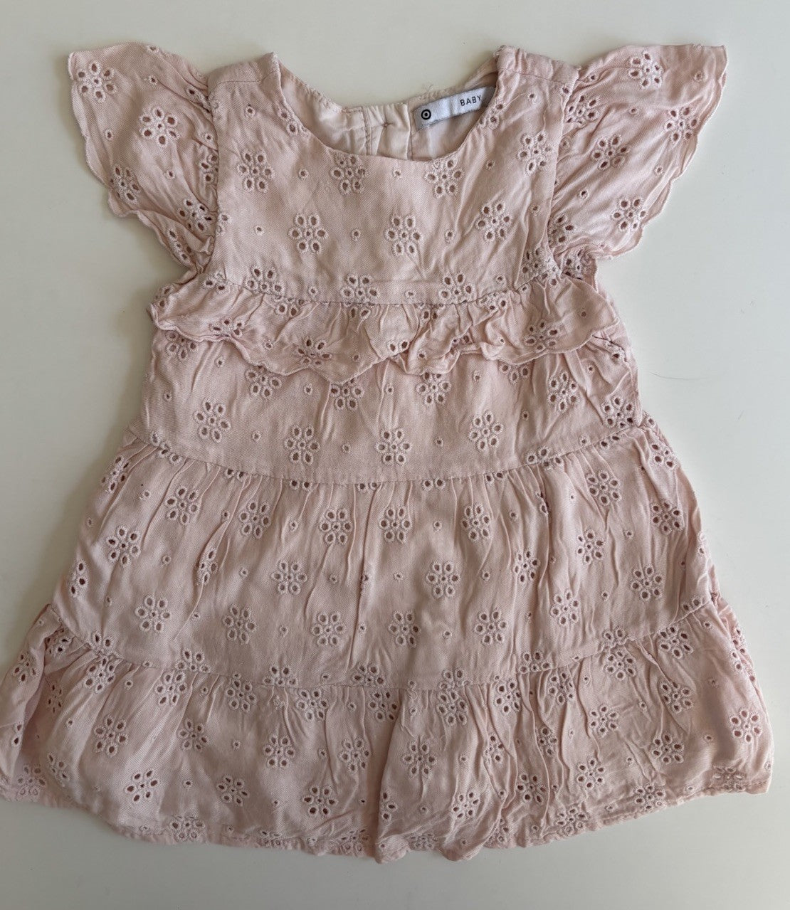 Target baby girl size 6-12 months pink lace tiered dress, VGUC