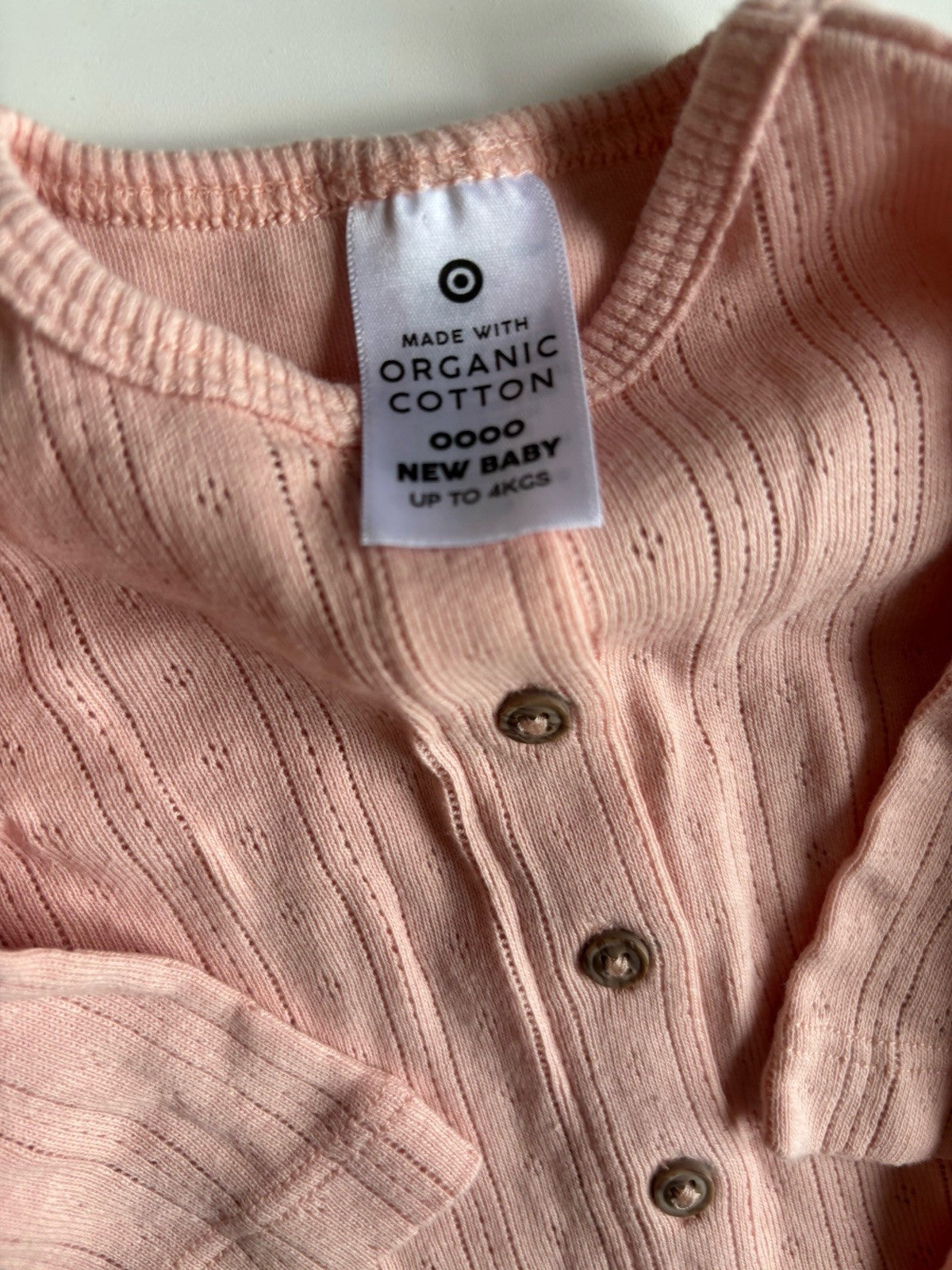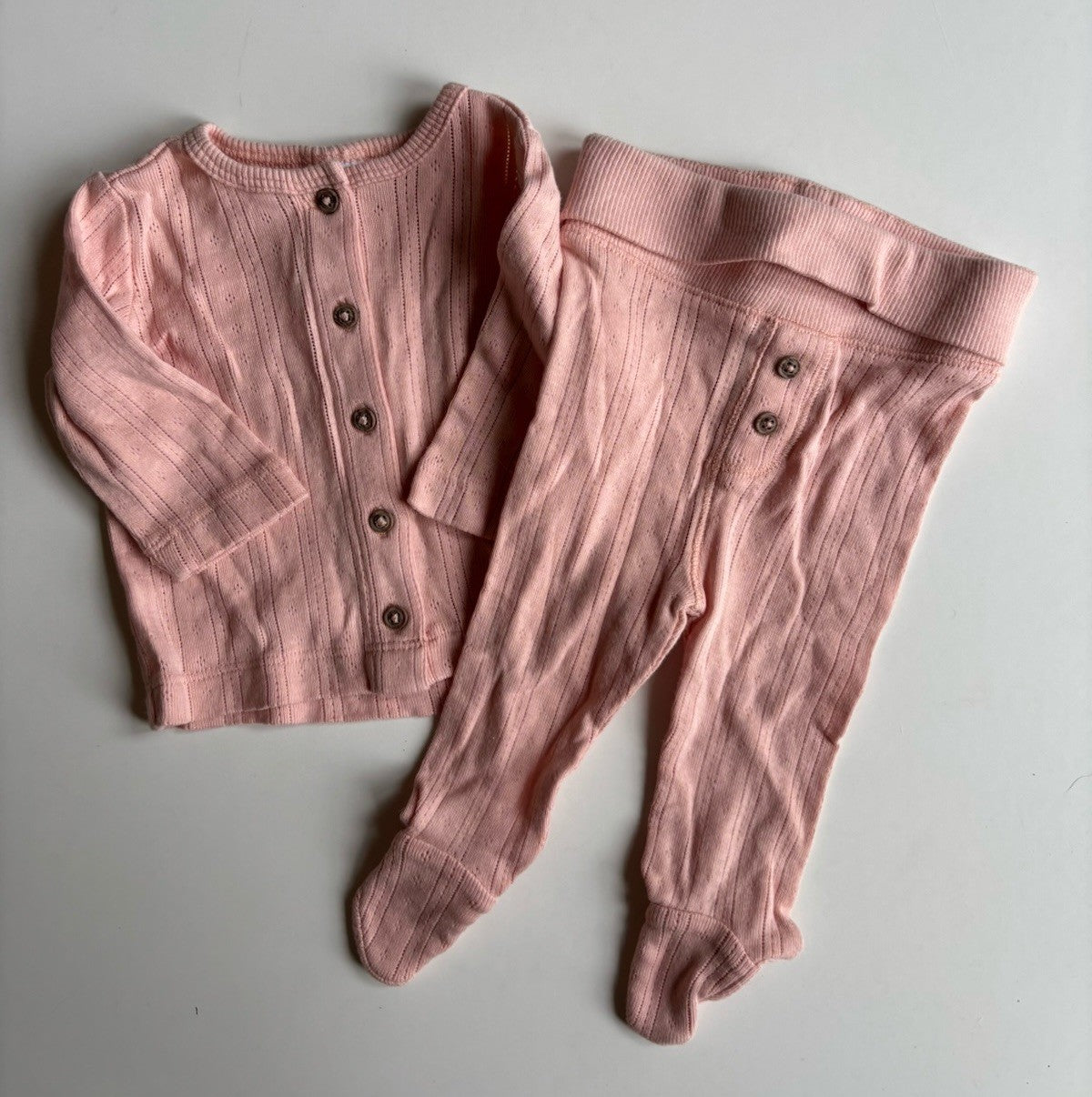 Target baby girl size newborn pink ribbed top footed leggings set, VGU
