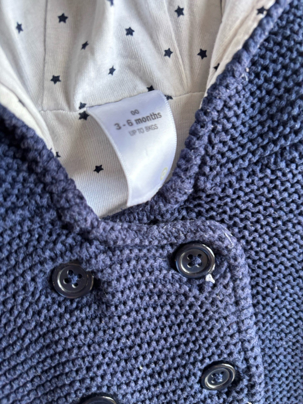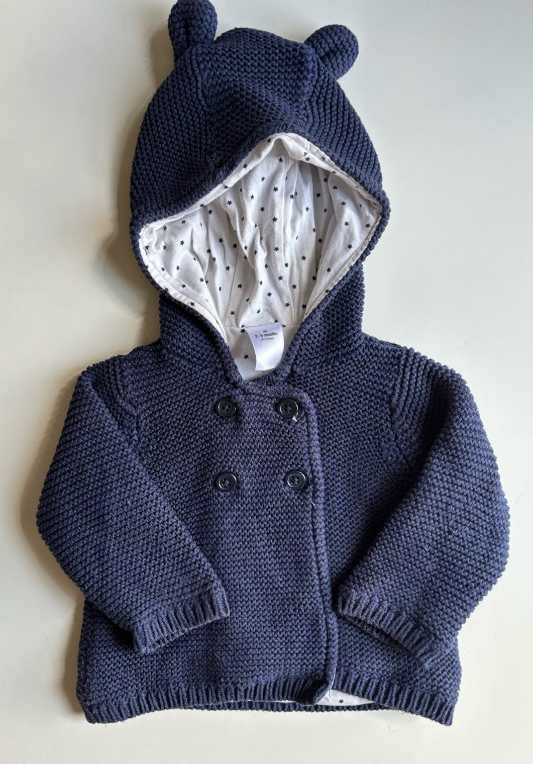 Target baby size 3-6 months navy blue knitted hooded cardigan jumper, VGUC