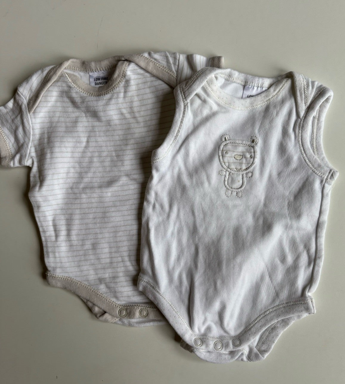 Target baby size newborn x2 grey white t-shirt tank bodysuits, VGUC