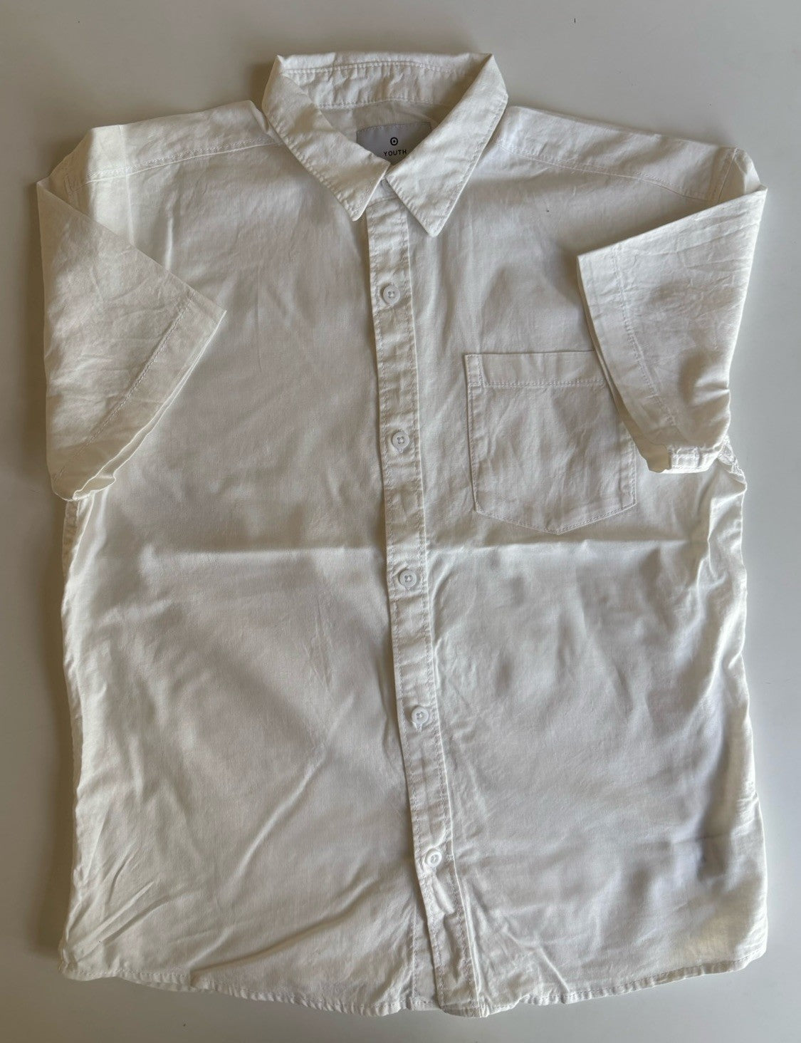 Target kids boys size 12 white button up short sleeve linen blend shirt, VGUC