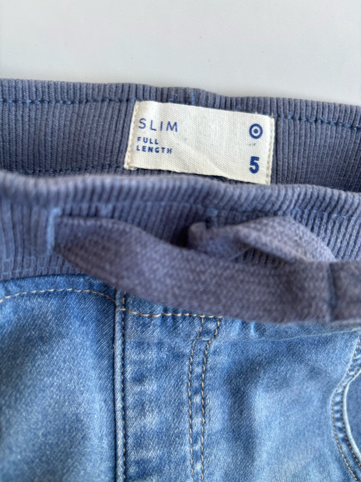 Target kids boys size 5 blue denim slim fit drawstring jeans pants, VGUC