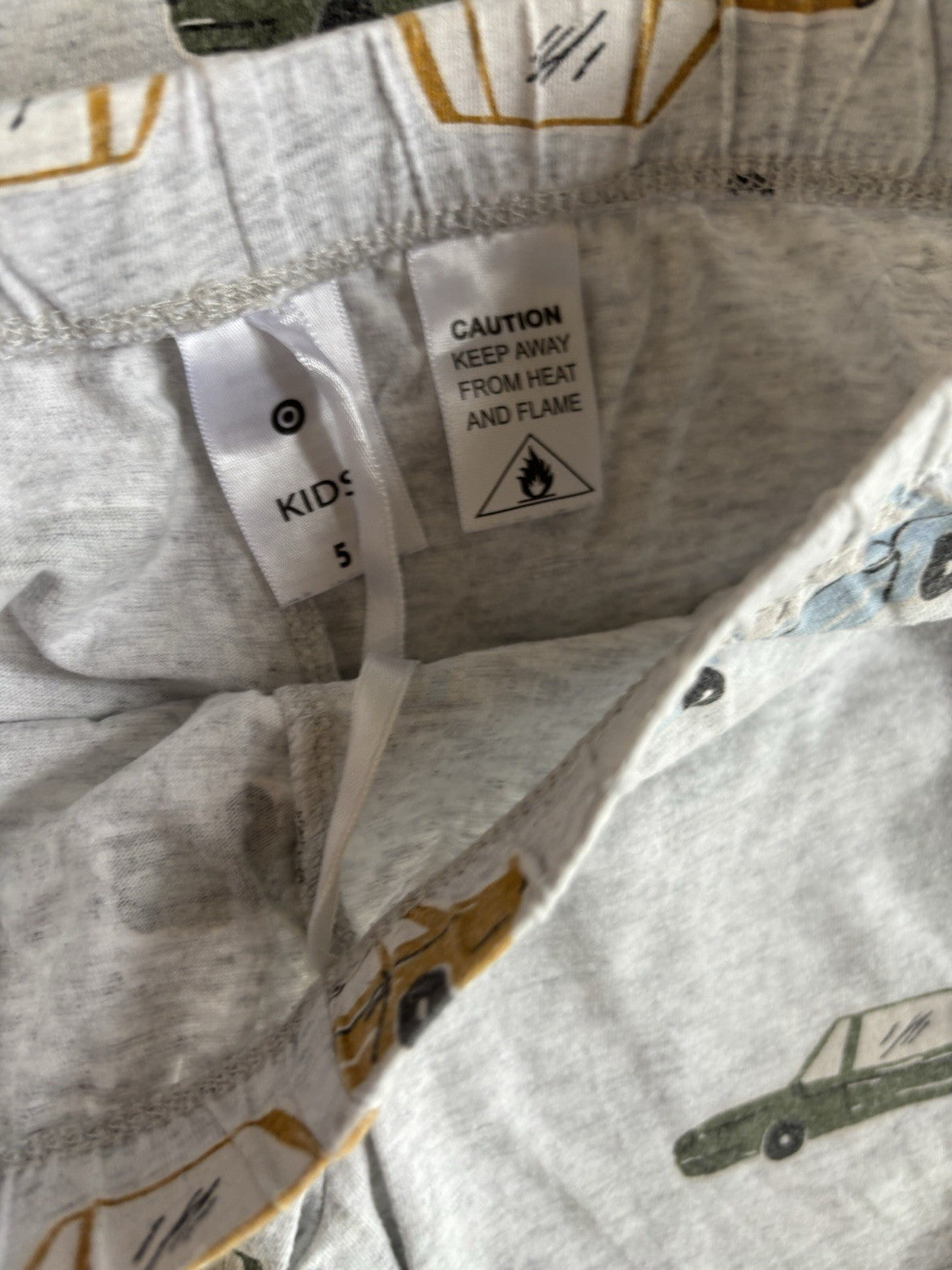 Target kids boys size 5 grey cars summer PJ set shorts top, VGUC