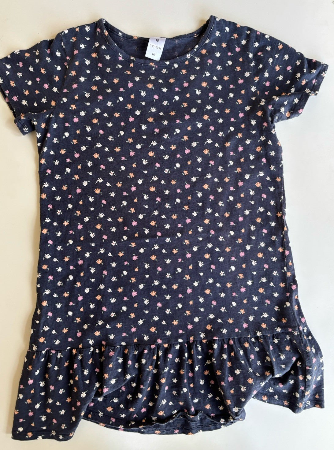 Target kids girls size 10 navy blue floral drop waist dress, VGUC