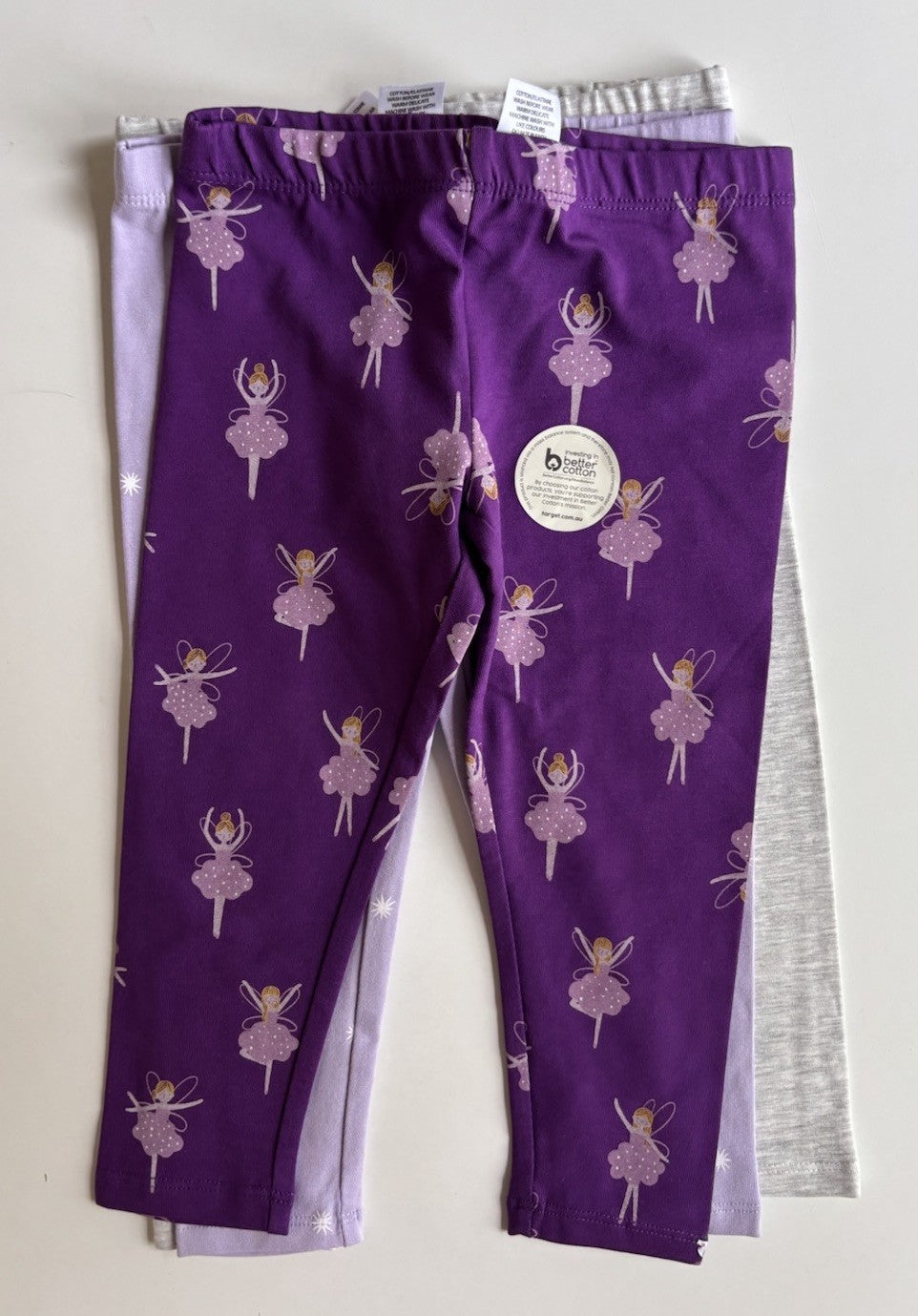 Target kids girls size 2 x3 pairs leggings purple ballerina stars, BNW