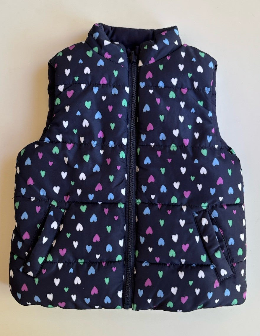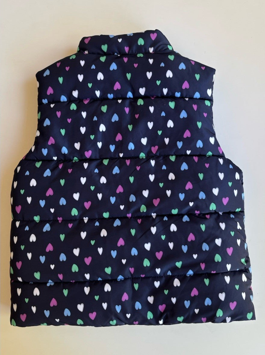 Target kids girls size 4 navy blue hearts zip up puffer vest, VGUC