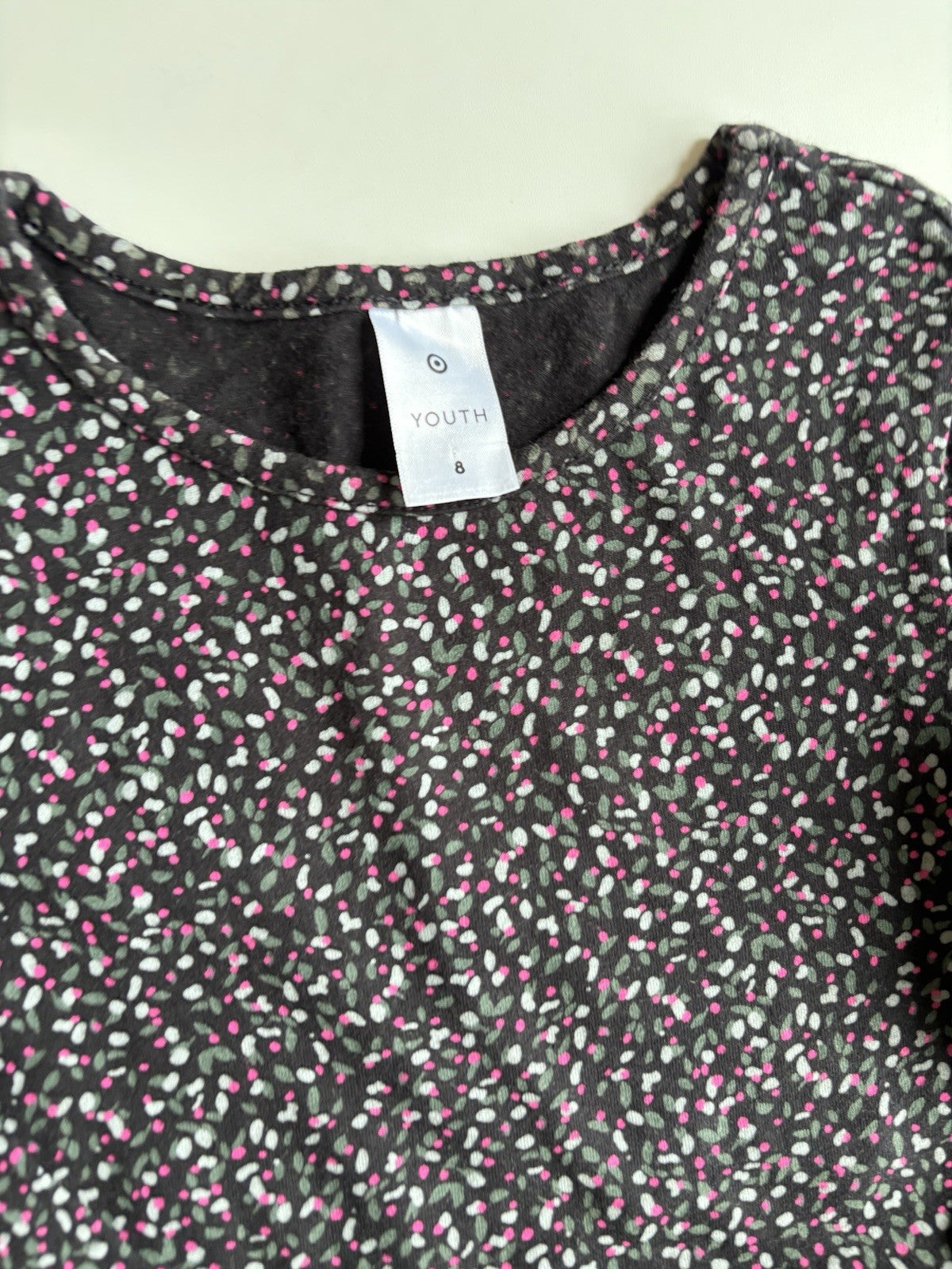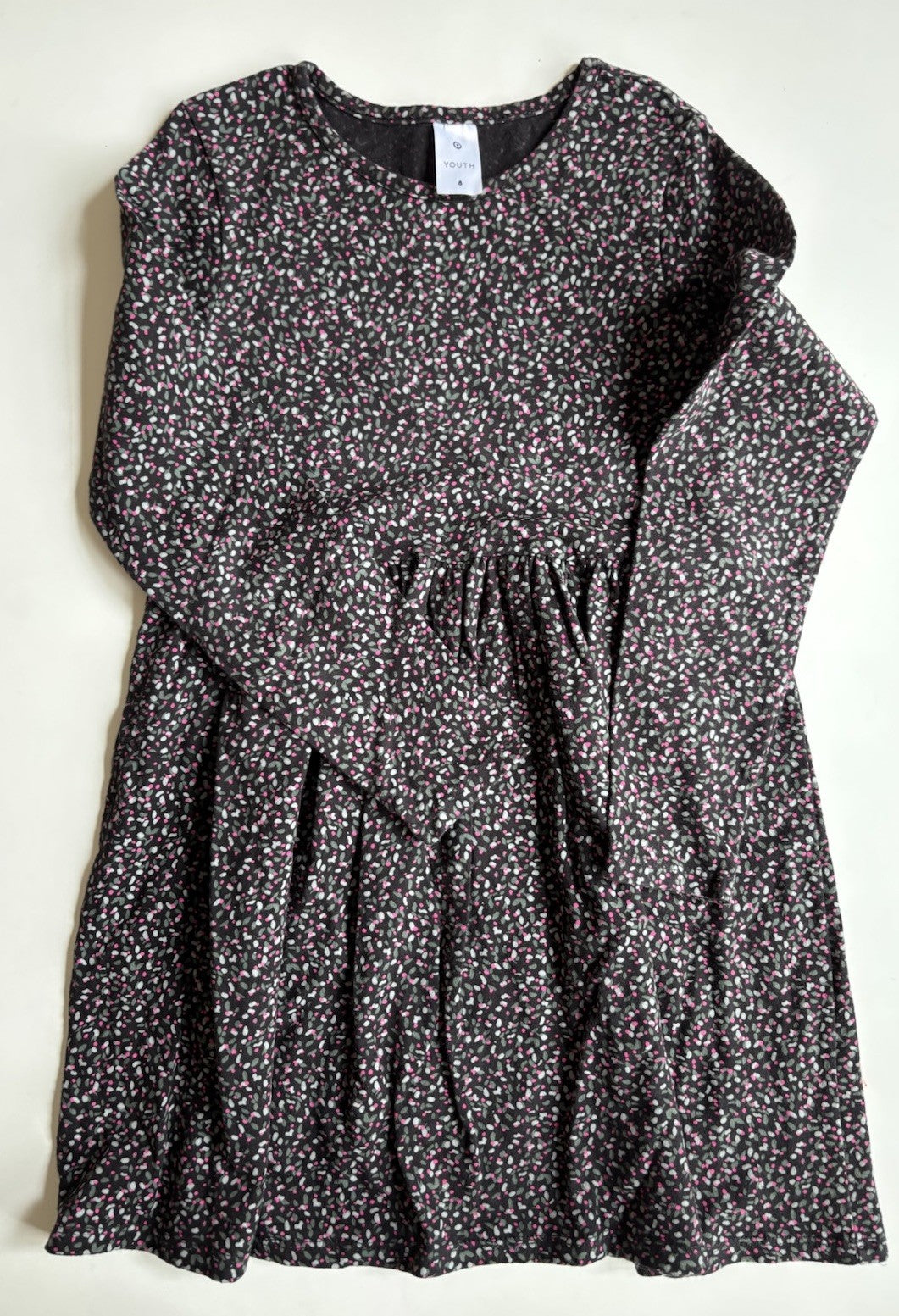 Target kids girls size 8 black pink green patterned dress, VGUC