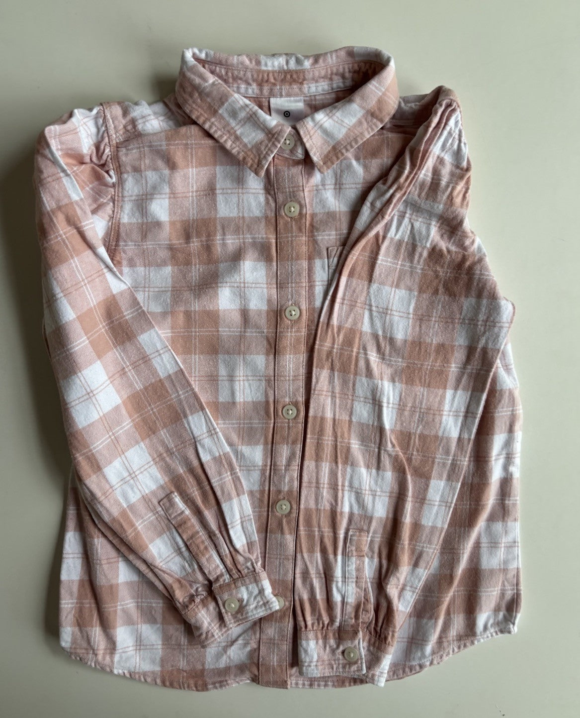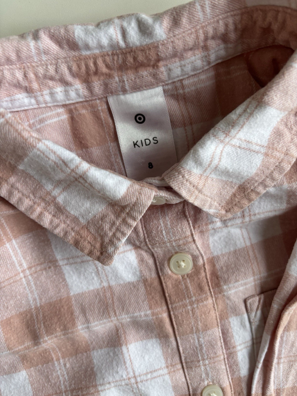 Target kids girls size 8 pink check flannel shirt, VGUC