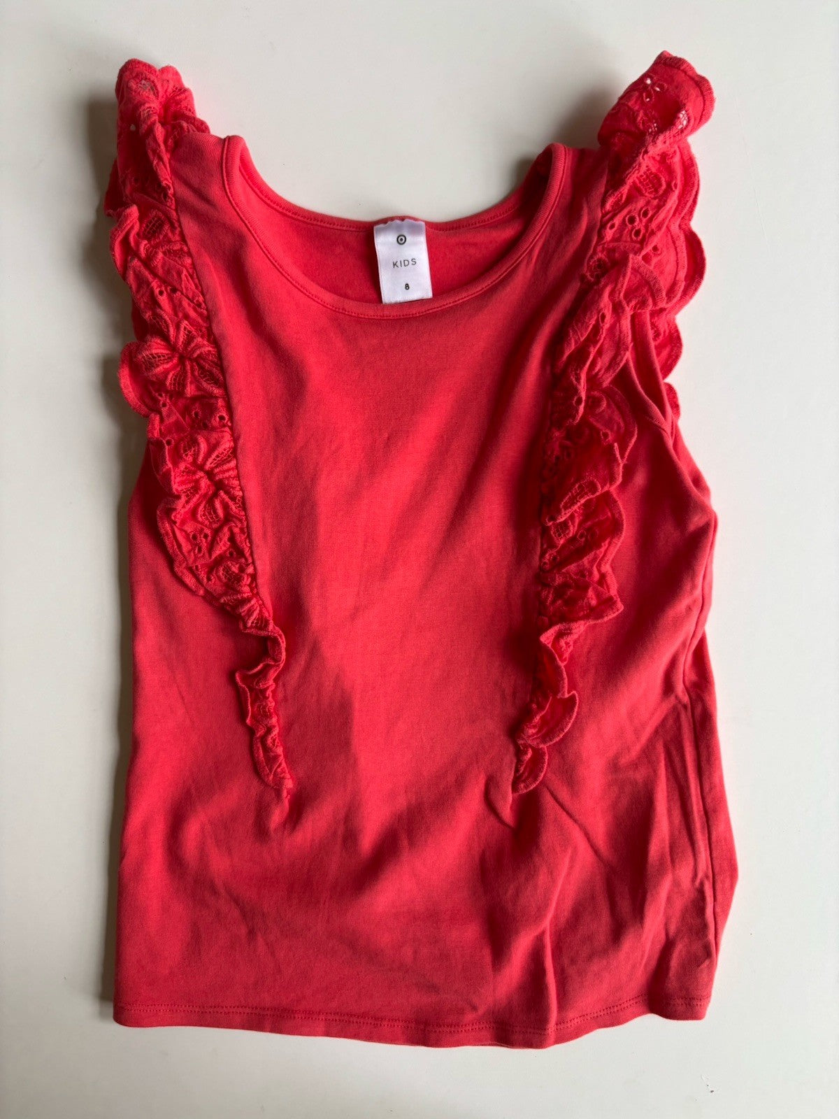 Target kids girls size 8 red lace sleeve top t-shirt, VGUC