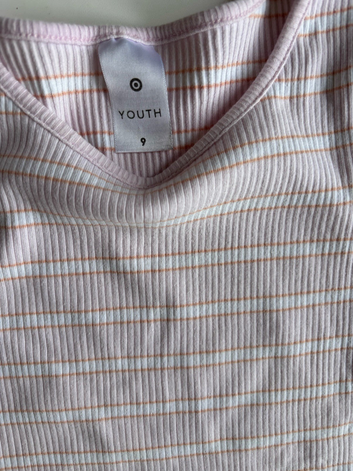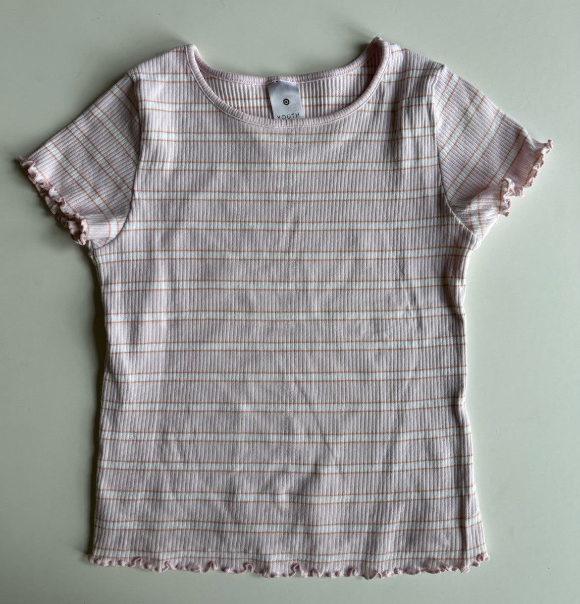 Target kids girls size 9 pink ribbed stripe short sleeve t-shirt, VGUC