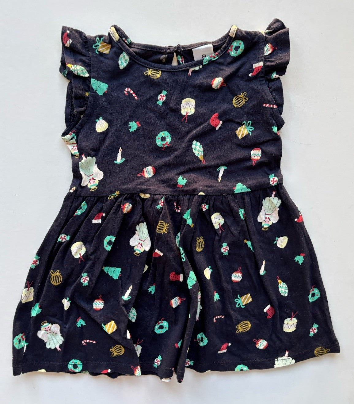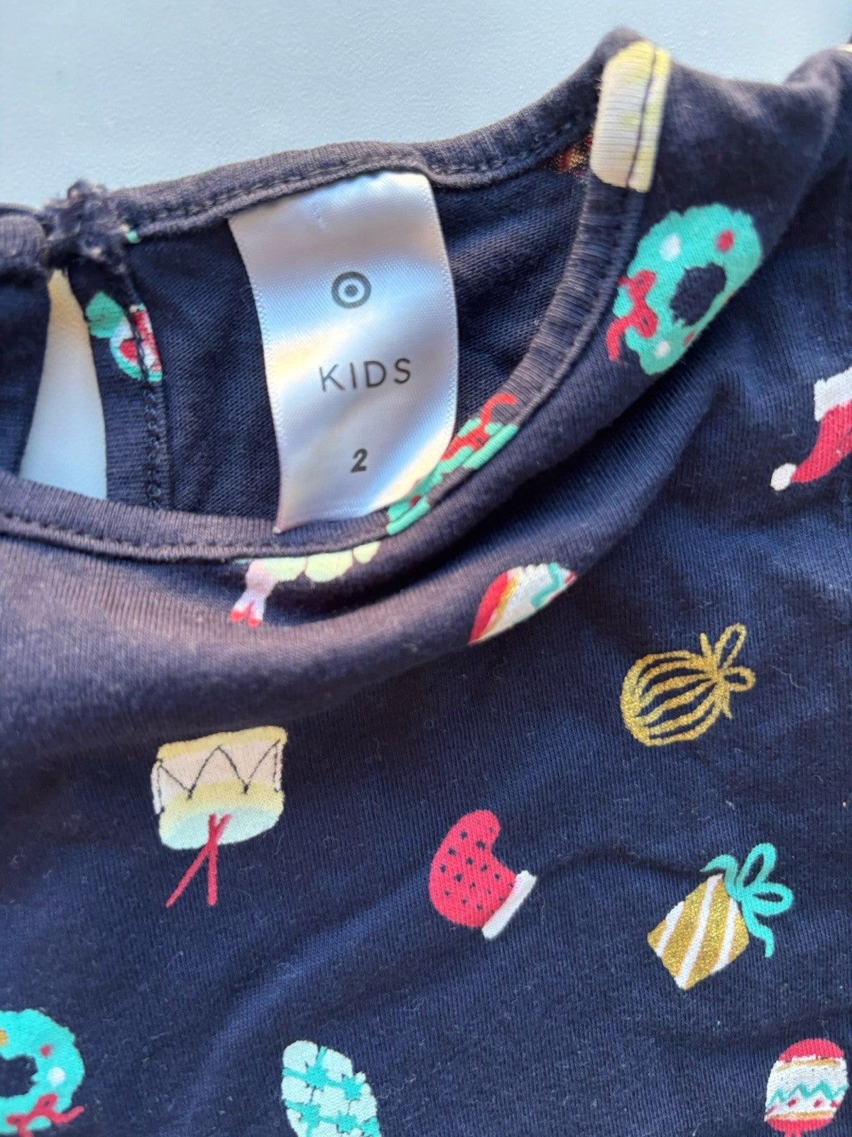 Target kids girls toddler size 2 navy blue Christmas t-shirt dress, VG