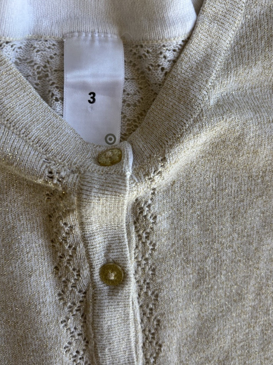 Target kids girls toddler size 3 gold knit short sleeve cardigan, VGUC