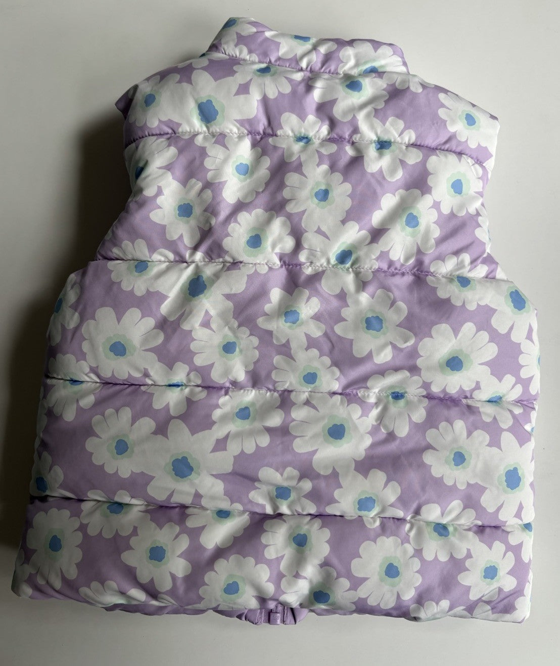 Target kids girls toddler size 4 purple white floral puffer vest, VGUC
