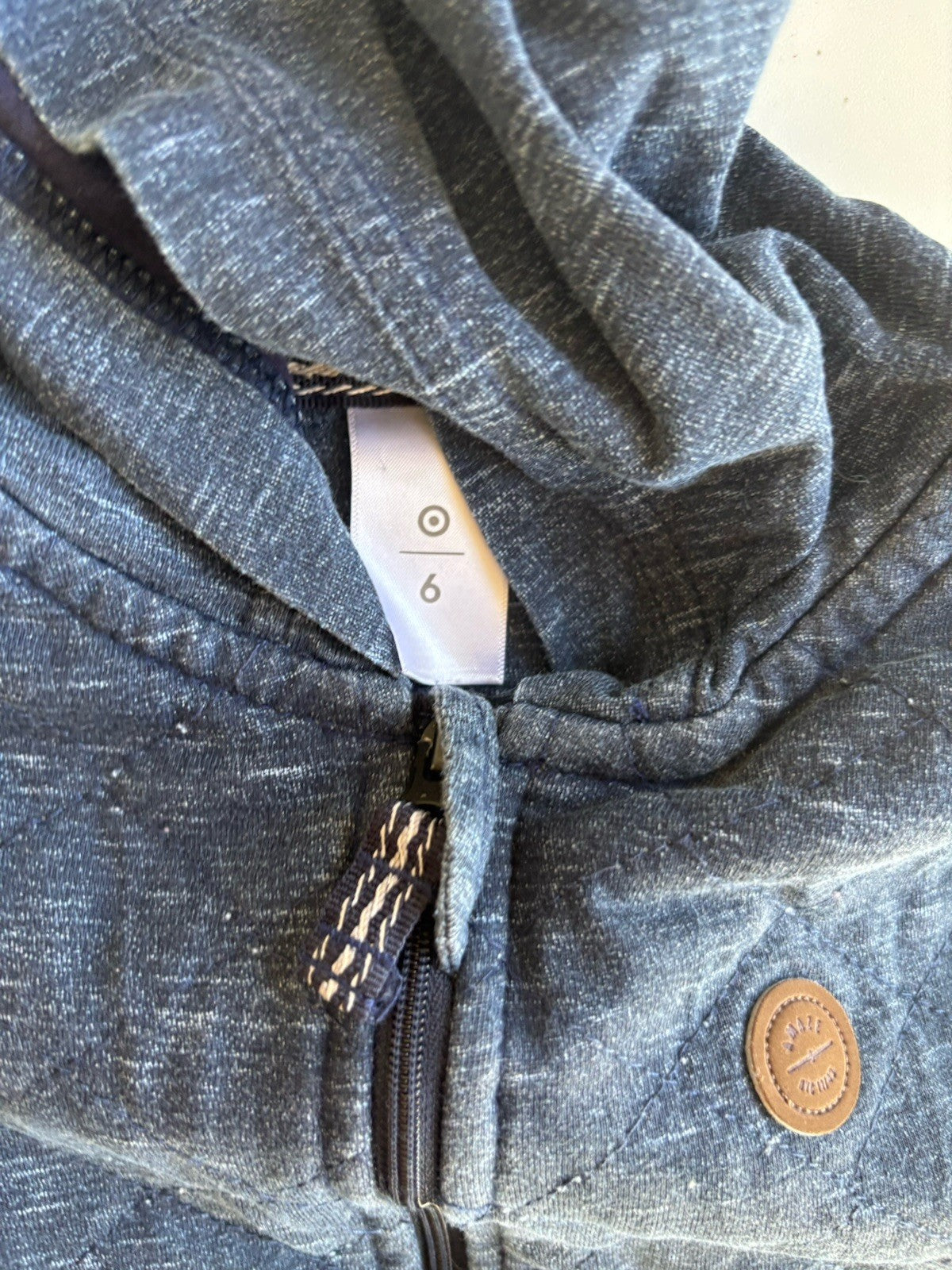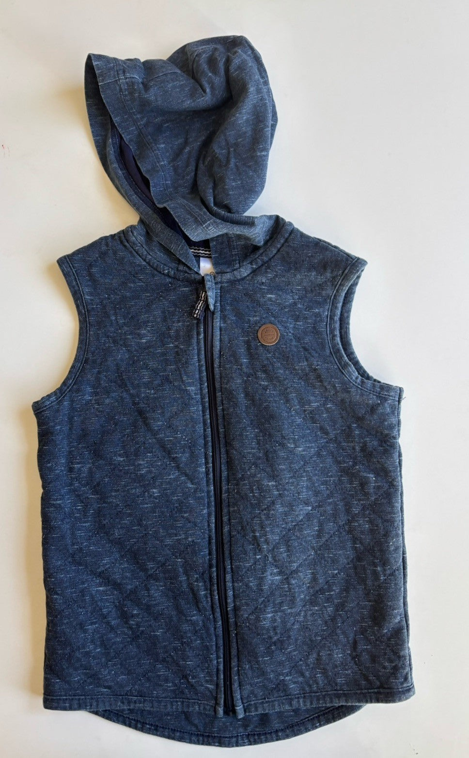 Target kids size 6 navy blue marle quilted hooded vest, VGUC