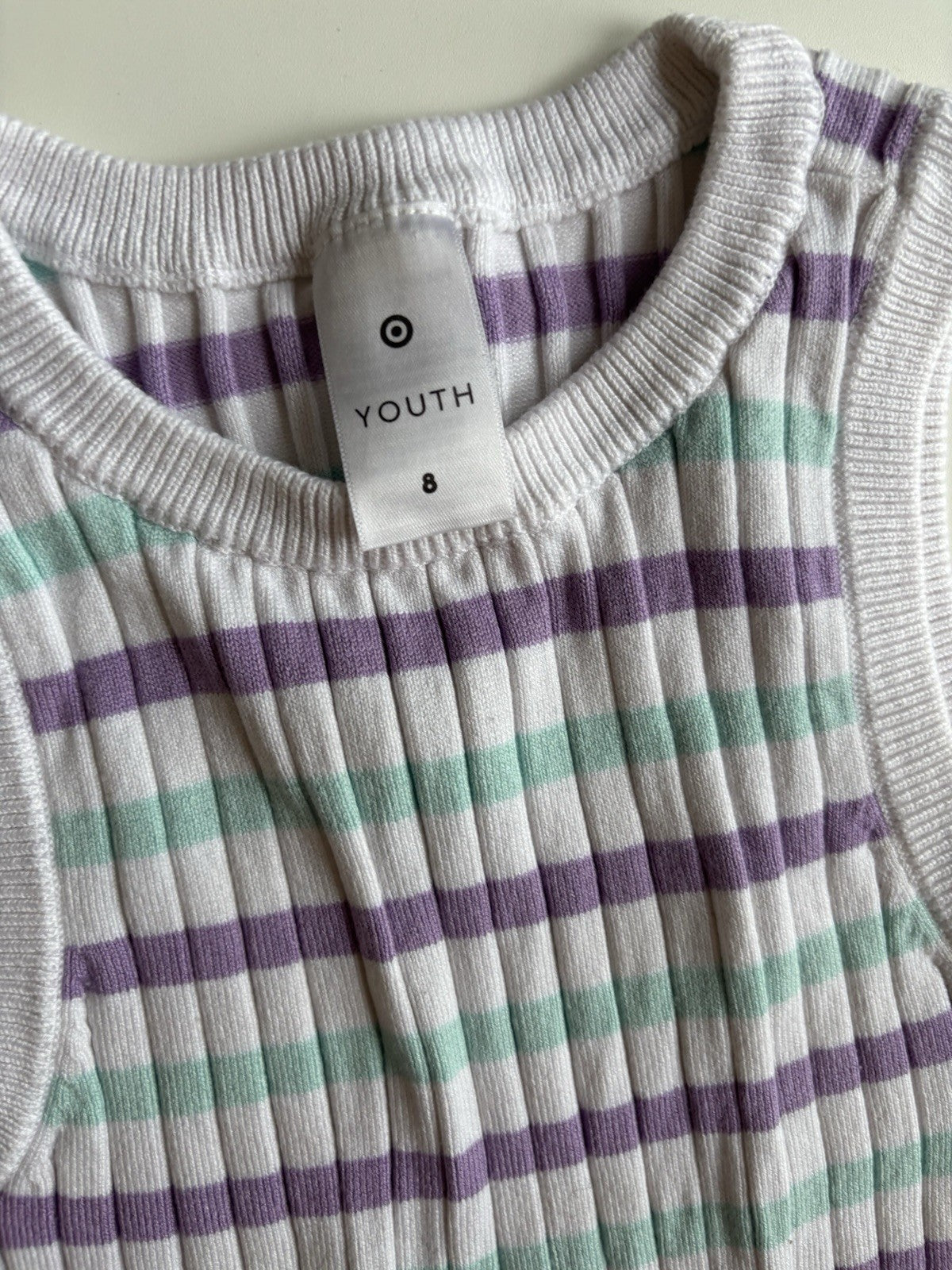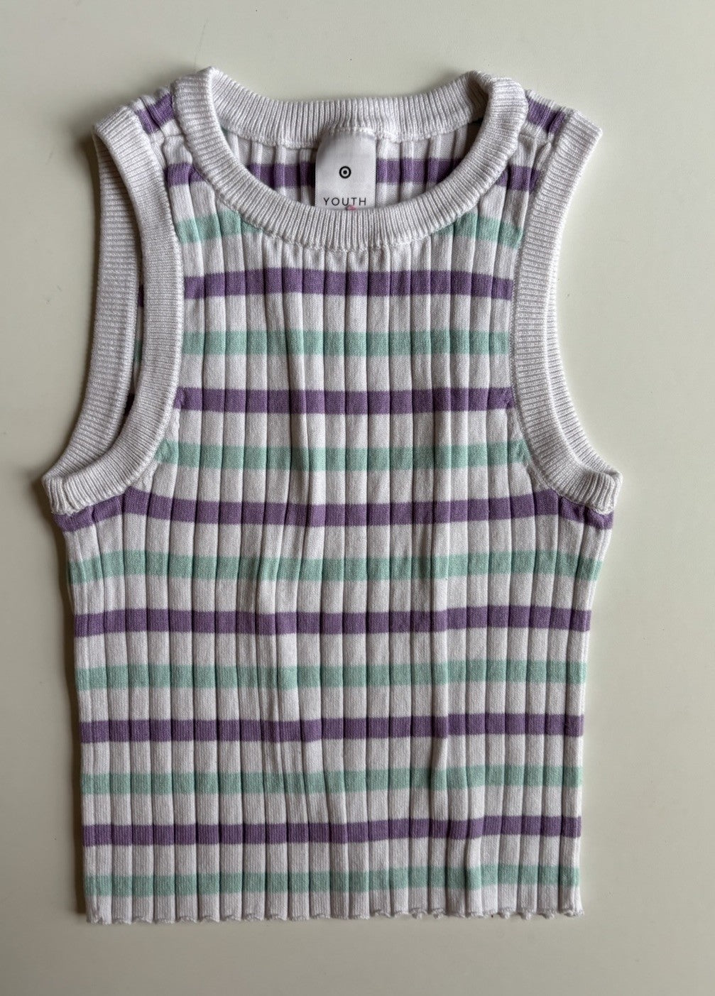 Target Youth kids girls size 8 white purple ribbed knit stripe tank, V