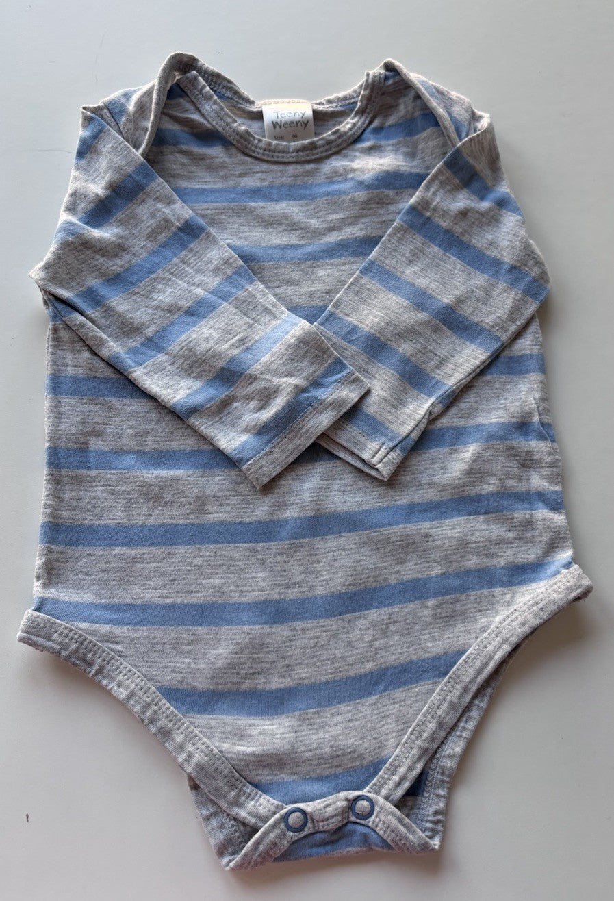 Teeny Weeny baby size 3-6 blue grey stripe bodysuit top, VGUC