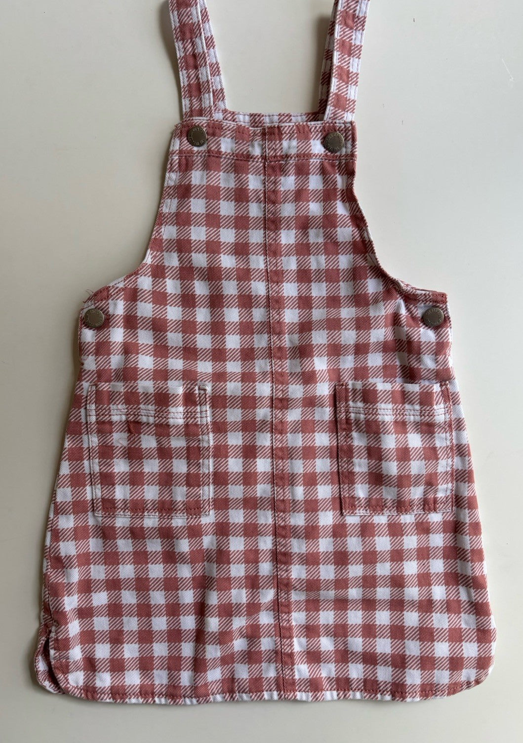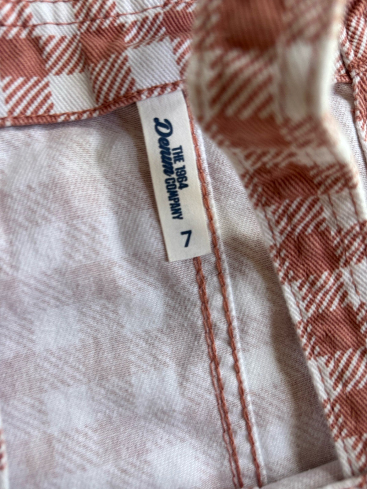The 1964 Denim Company kids girls size 7 brown check denim pinafore dress, VGUC