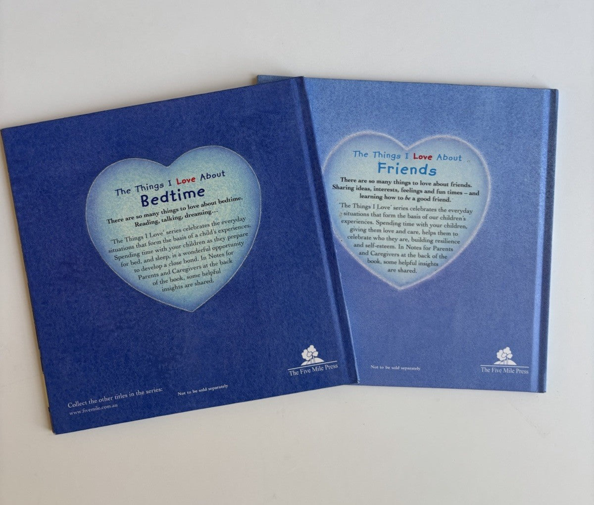 The Things I Love About Friends/Bedtime Trace Moroney hardcover kids books, VGUC