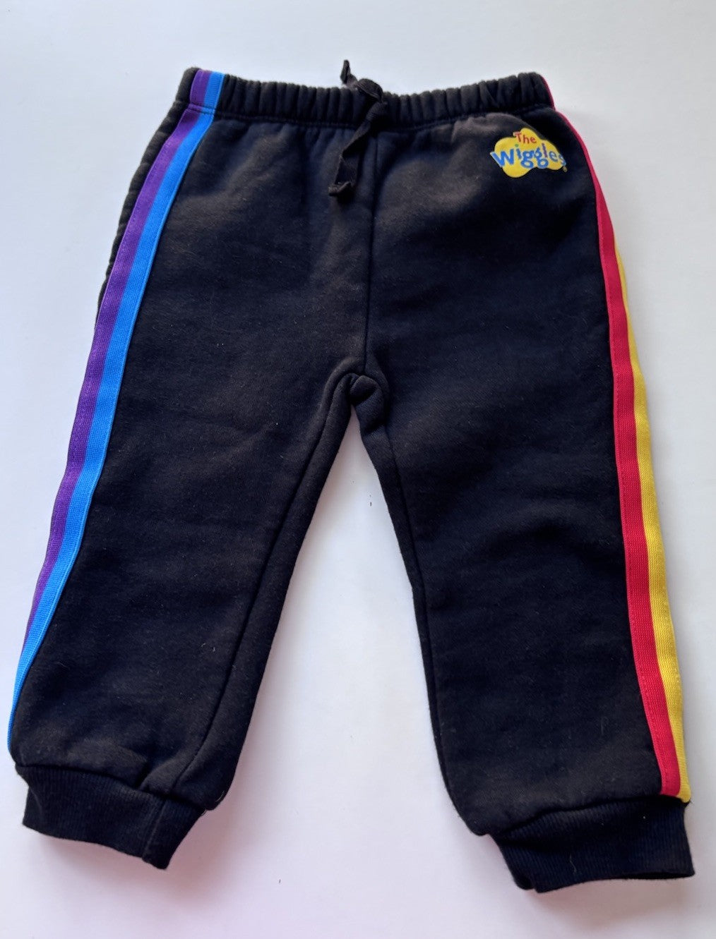 The Wiggles baby size 12-18 months black colourful stripe tracksuit pants, EUC