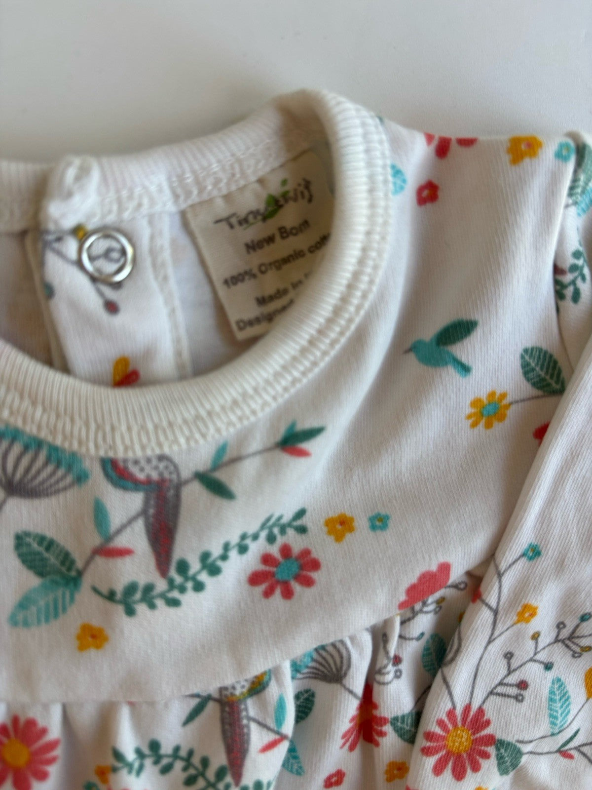 Tiny Twigs baby girl size newborn white floral birds dress, VGUC