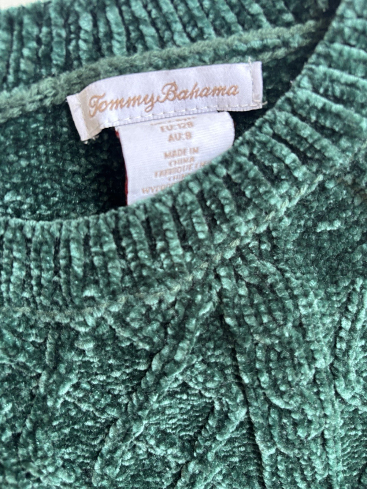 Tommy Bahama kids girls size 8 green cable knit pullover jumper, VGUC