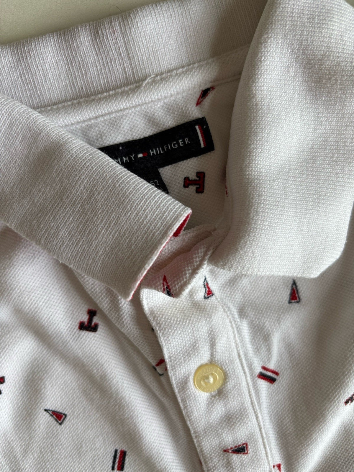 Tommy Hilfiger kids boys size 152 (11-12 years) white logo polo shirt, VGUC