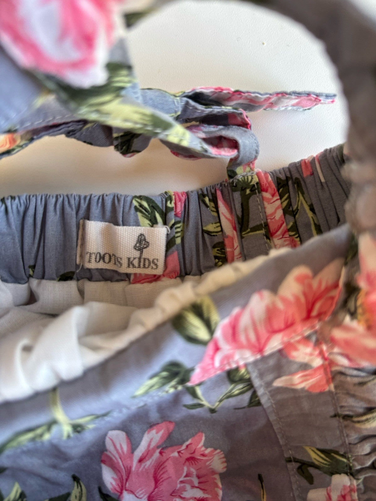 Toots Kids baby girl size 12-18 months blue pink floral pinafore dress
