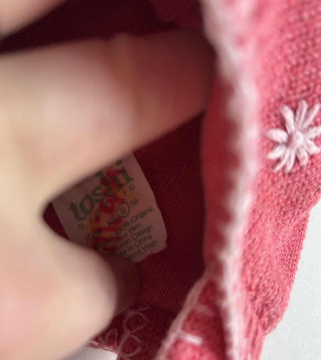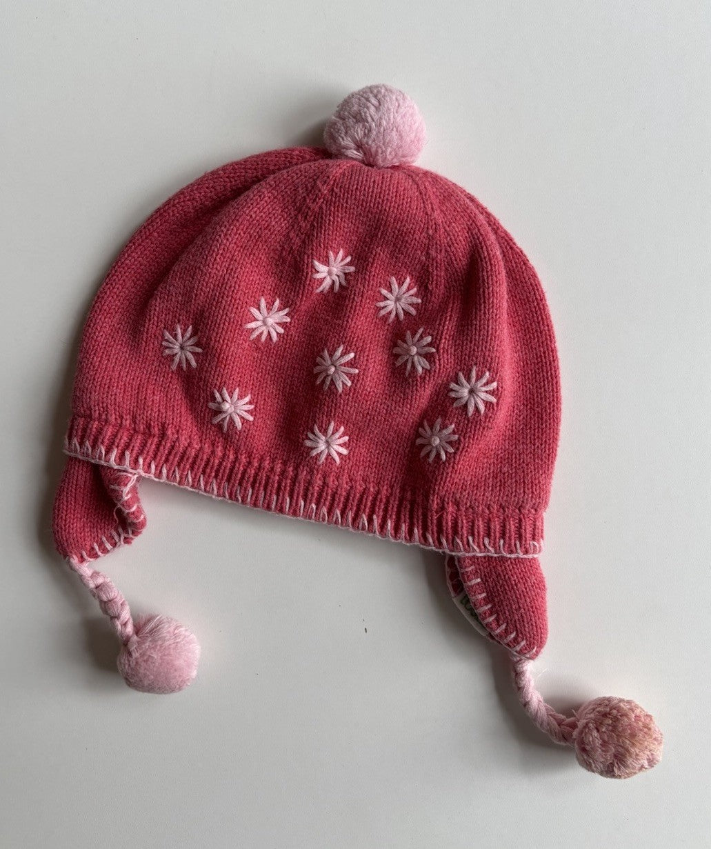 Toshi baby girl size S pink floral knitted beanie hat, VGUC