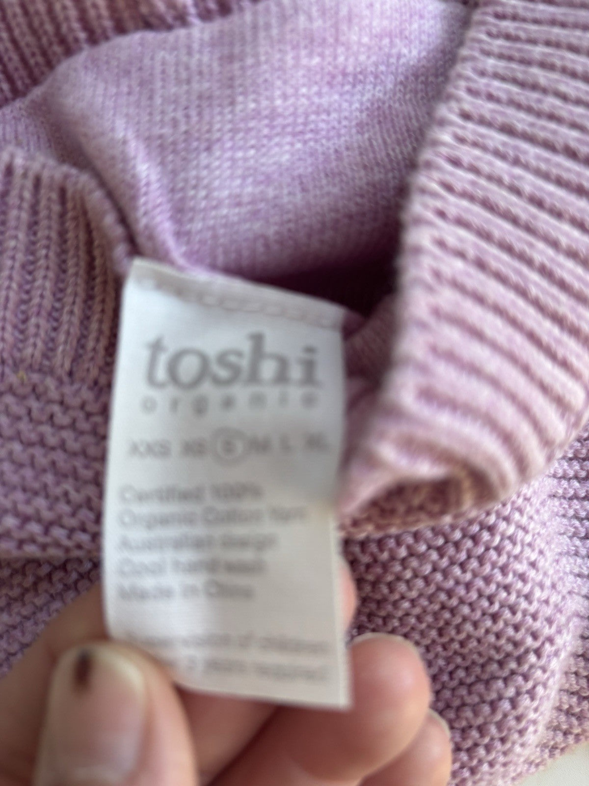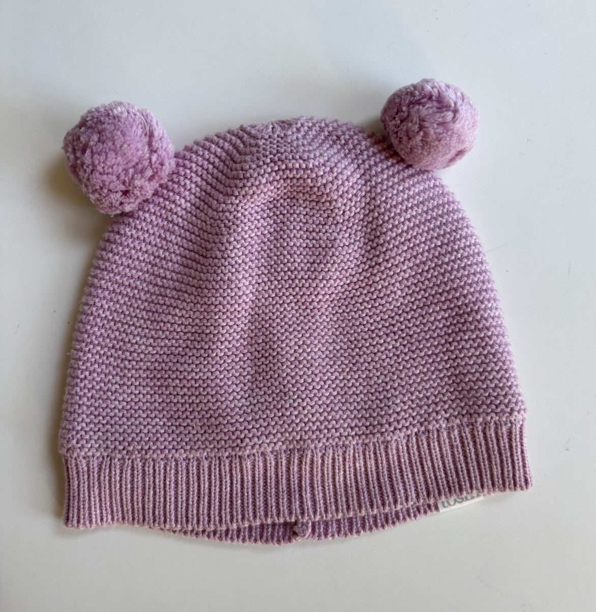 Toshi baby girl size S purple knit pom pom beanie hat, VGUC