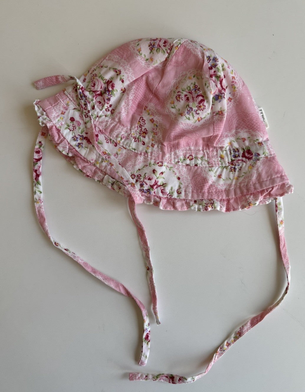 Toshi baby girl size XS pink floral sun hat, VGUC