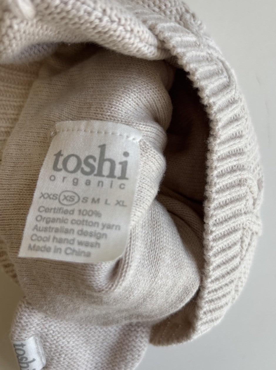 Toshi baby size XS beige knitted beanie hat, VGUC