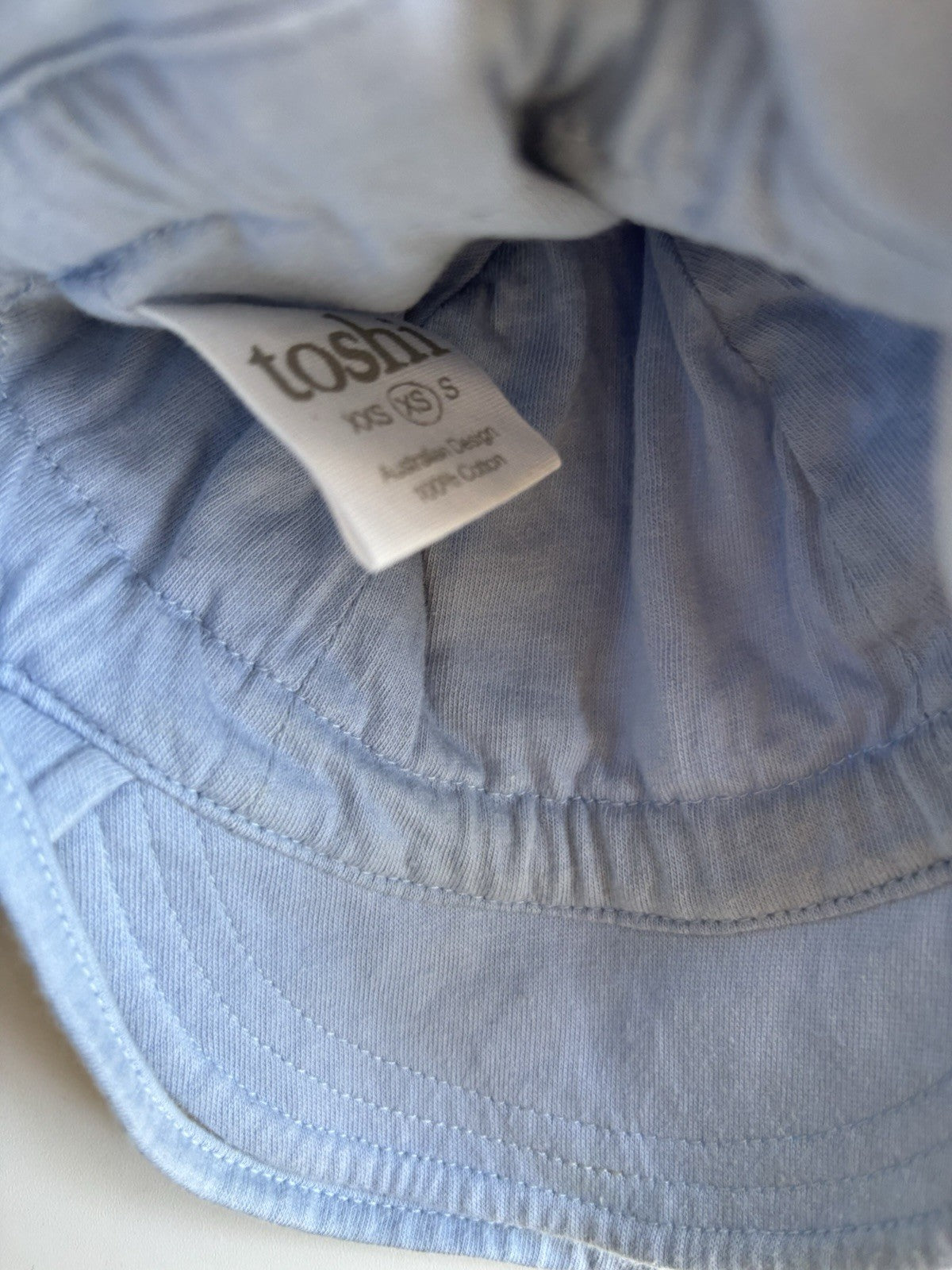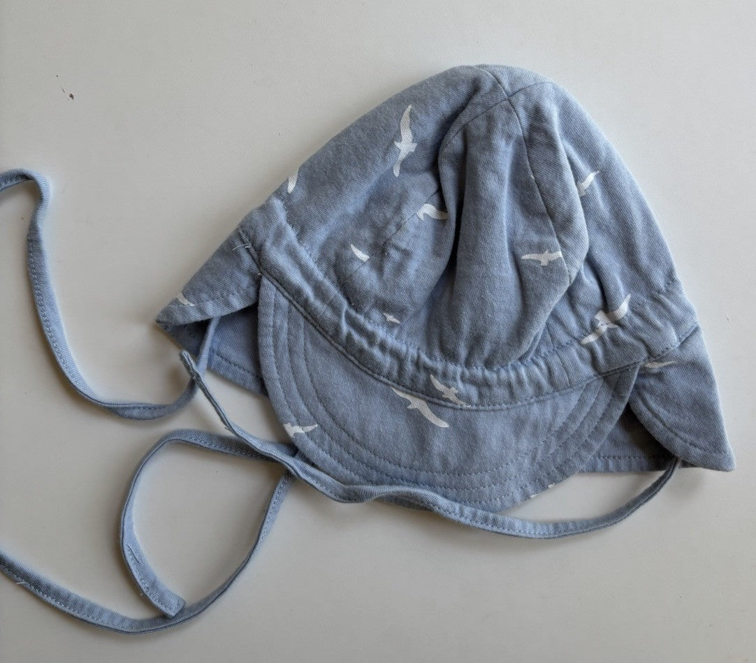 Toshi baby size XS (newborn-8 months) blue white birds sun hat cap, VGUC