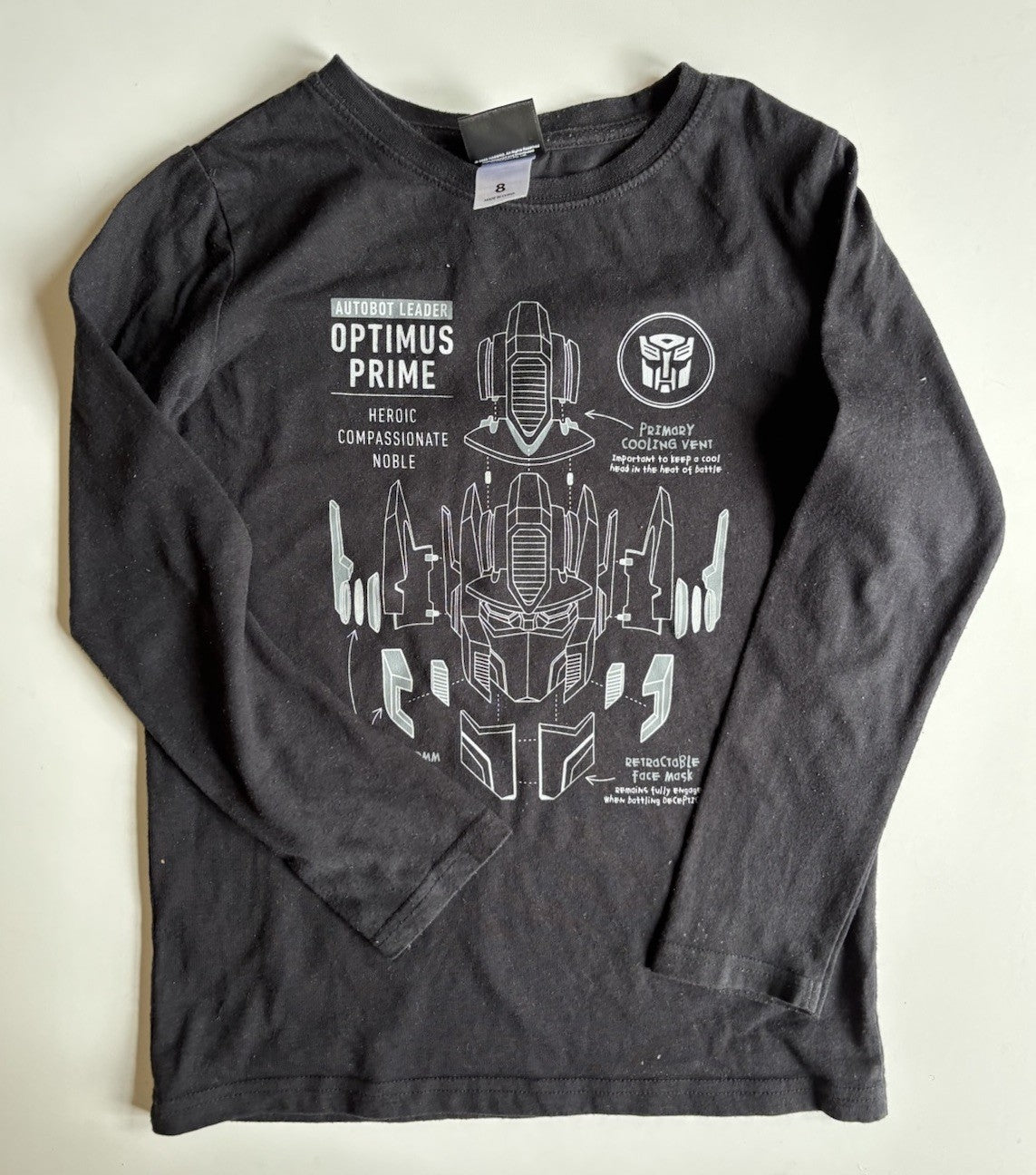 Transformers kids boys size 8 black long sleeve t-shirt Optimus Prime,