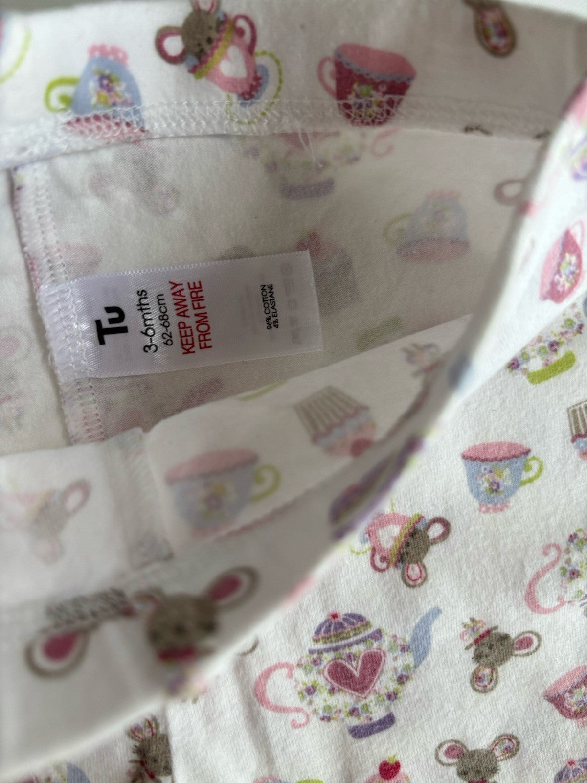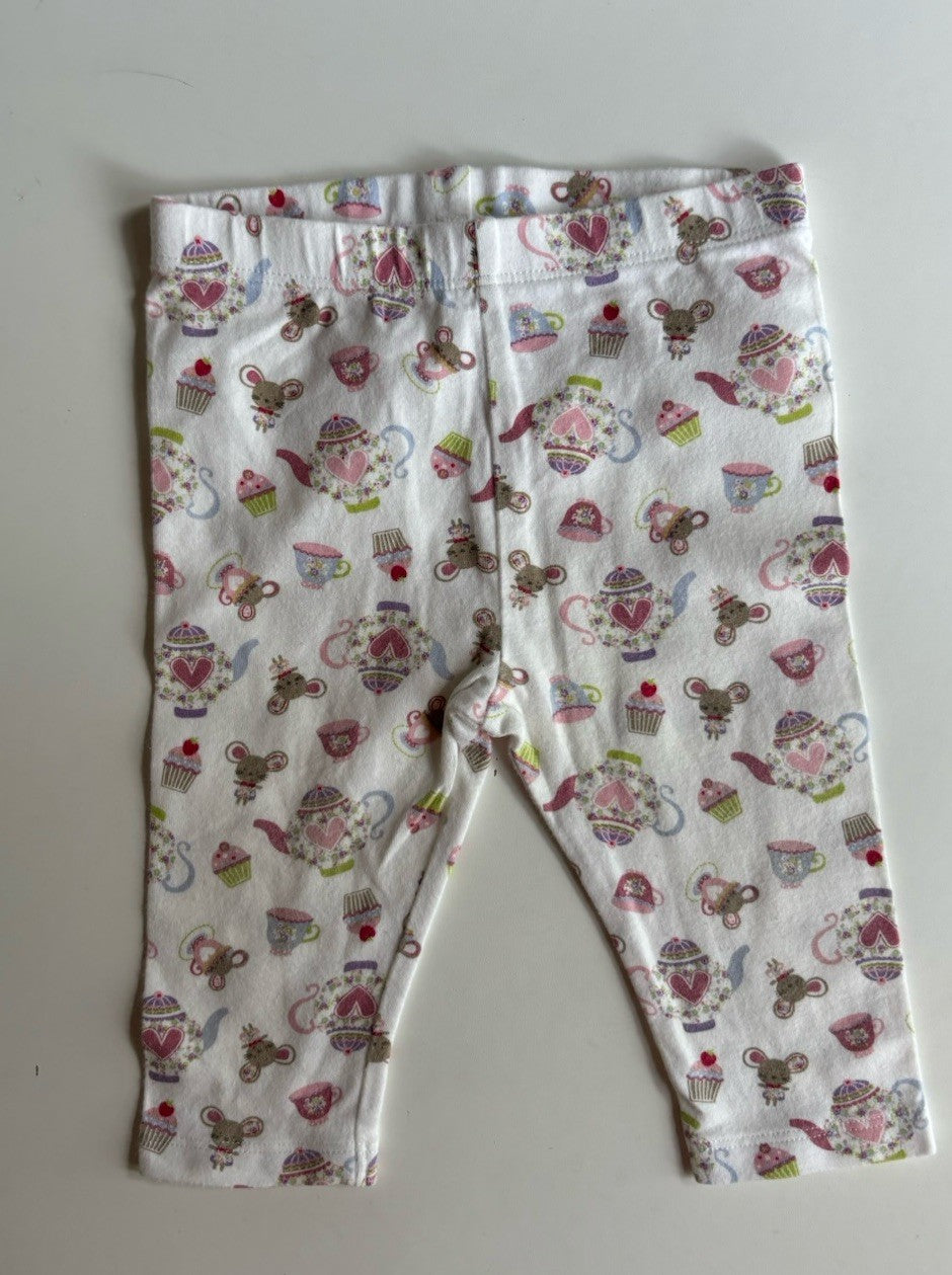 Tu baby girl size 3-6 months white cupcakes mice leggings pants, VGUC