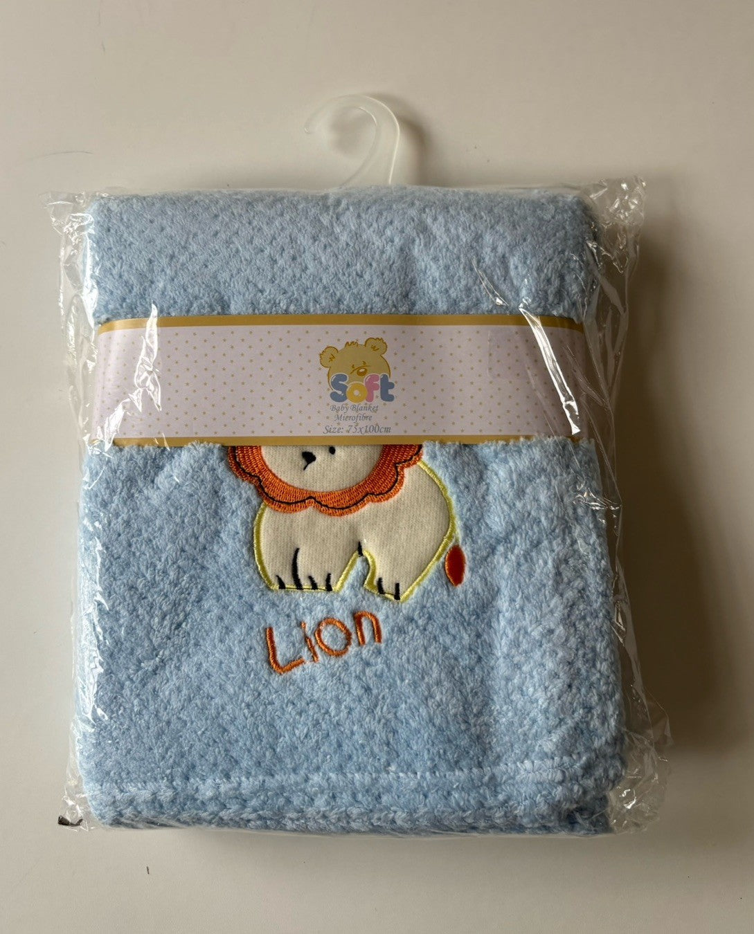 Unbranded baby blanket 75x100cms blue microfibre lion, BNWT