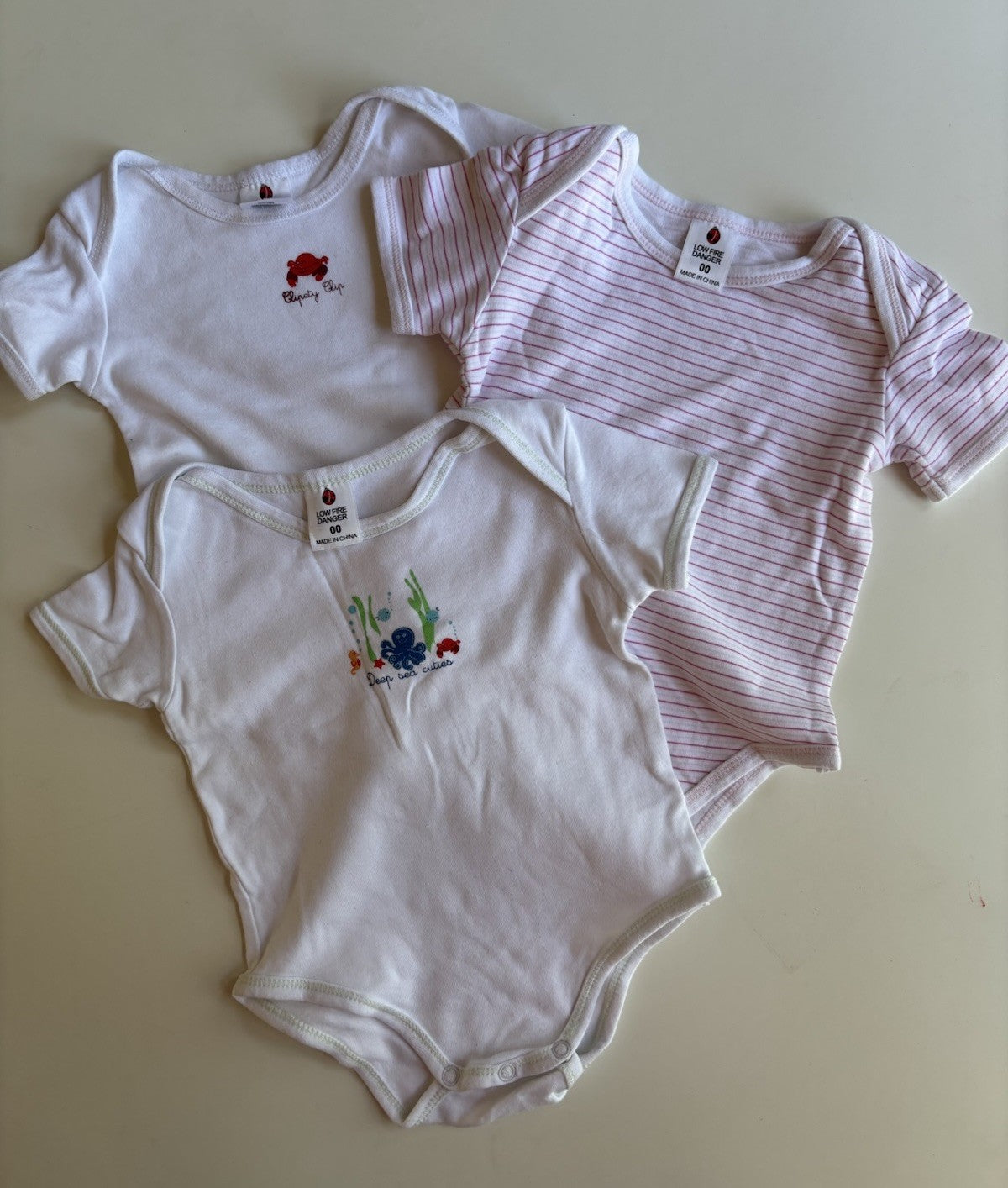 Unbranded baby girl size 3-6 months x3 bodysuit tops white pink bundle
