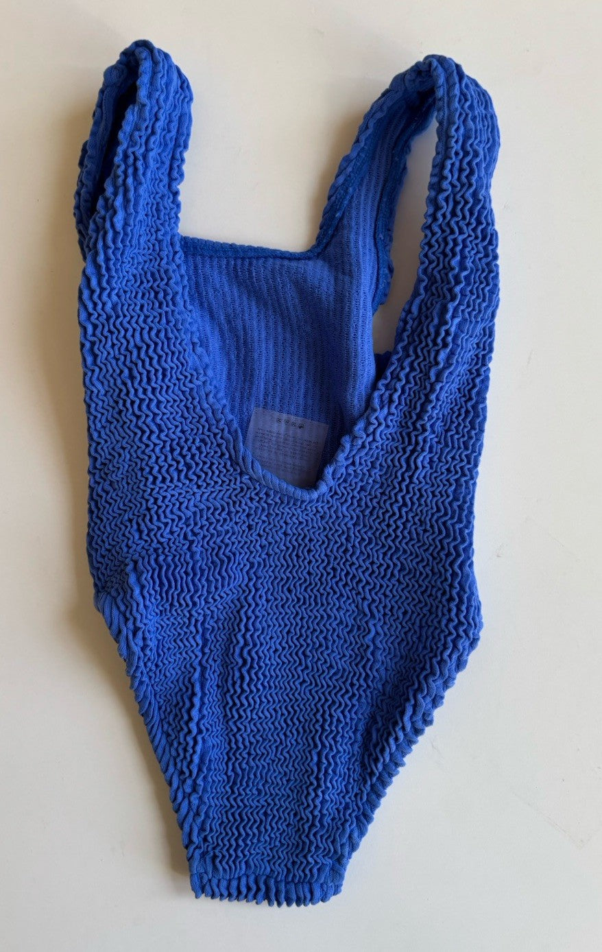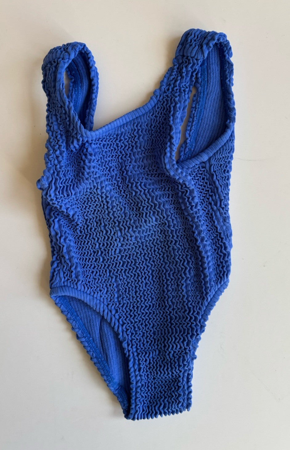 Unbranded baby girl size 6-12 months blue textured one piece bathers,