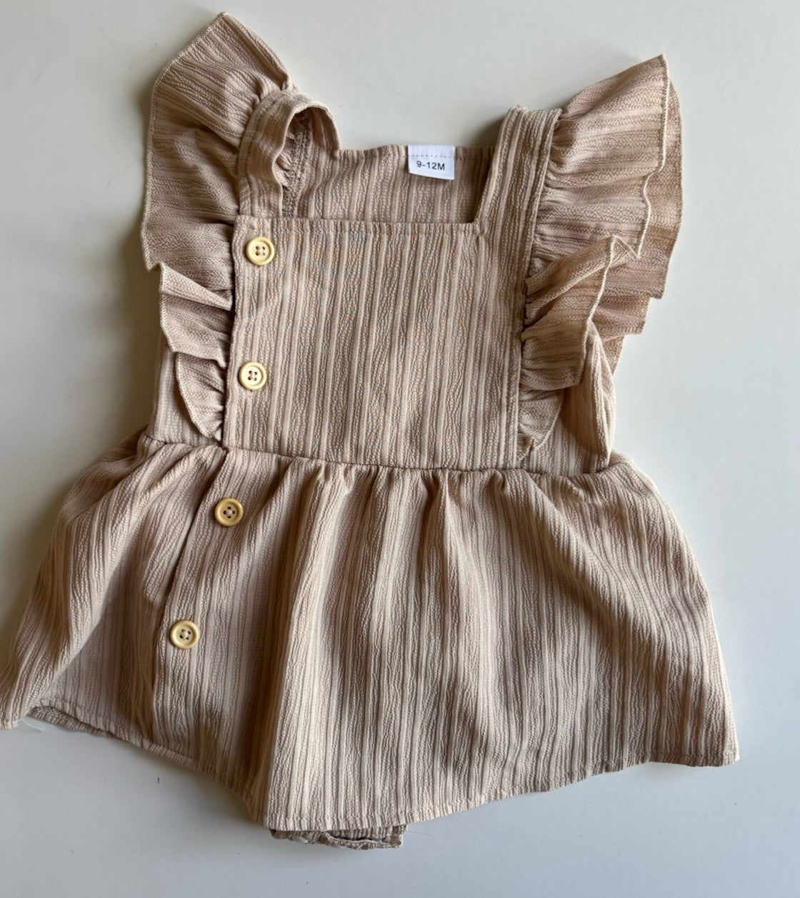 Unbranded baby girl size 9-12 months beige ribbed bodysuit dress, VGUC