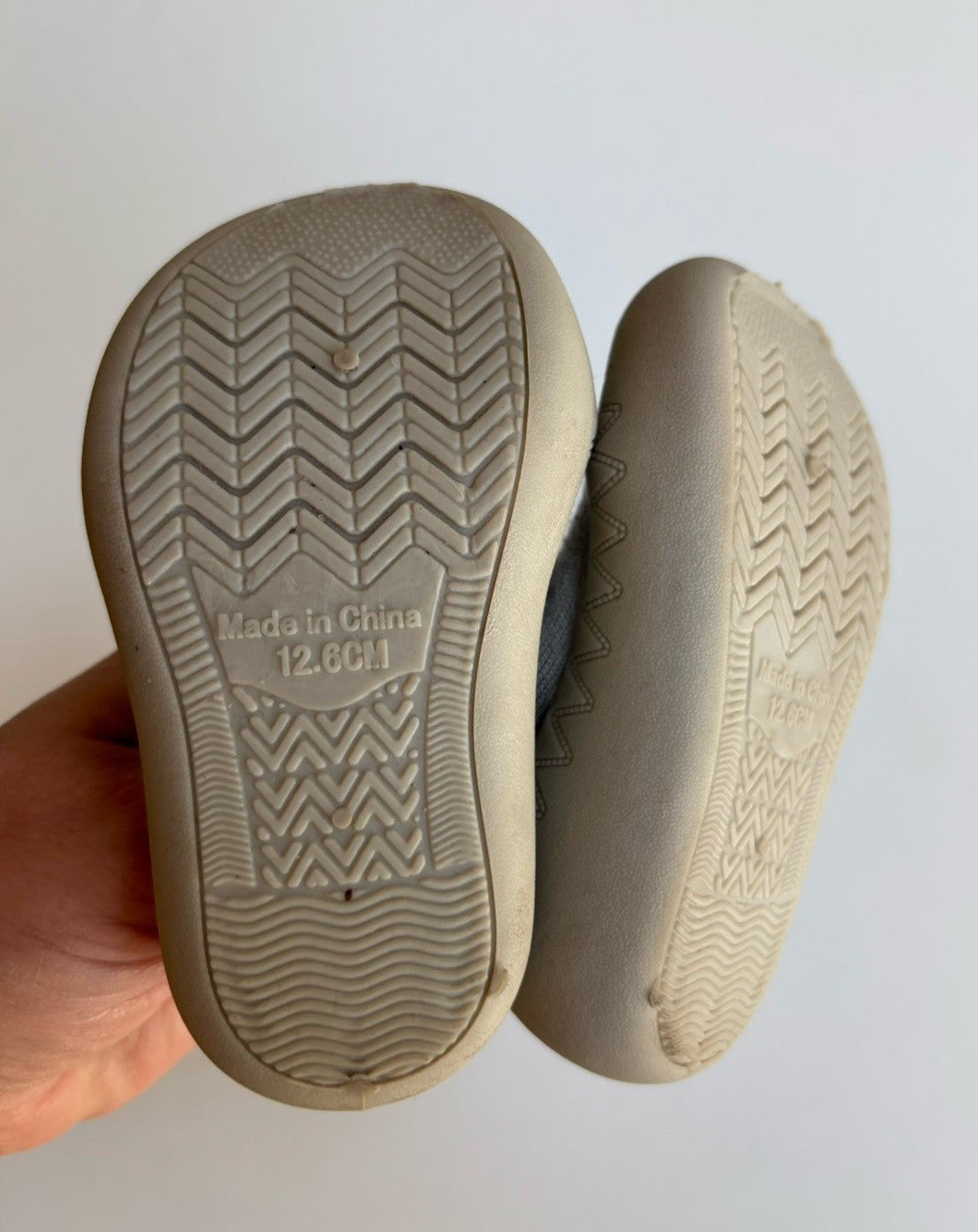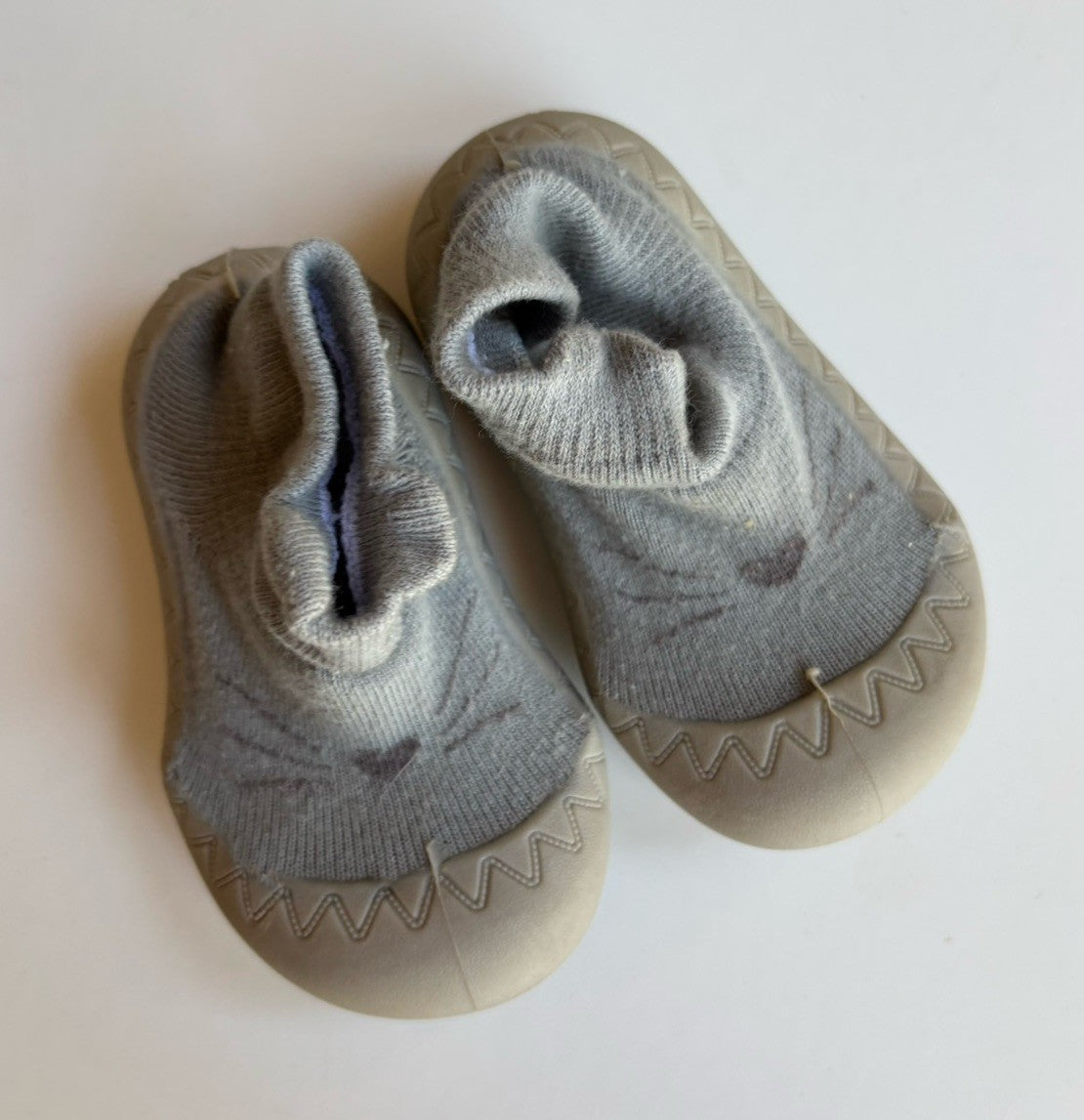 Unbranded baby size 12.6 cms grey cat sock shoes, VGUC