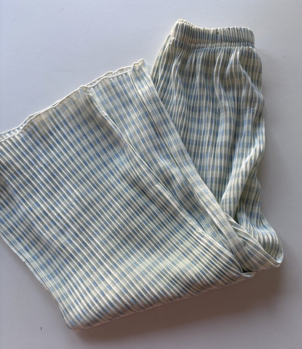 Unbranded kids girls size 4-5 years blue white check pleated pants, VGUC