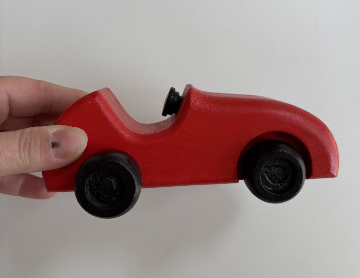 Unbranded kids toddler red black wooden car toy, VGUC